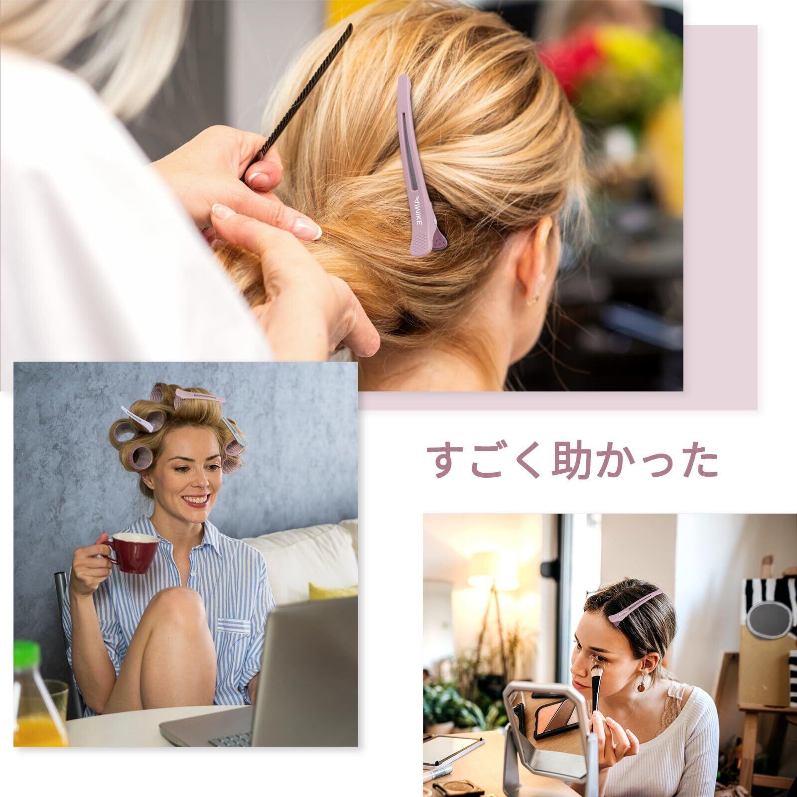 ❀【跡が付きにくい】ダッカールピンはシリコンバンドが付いたので、長時間つけていても髪に跡が付きにくいです。ワニピンと違って髪に絡まりにくく、引っ張ることなく簡単に着脱できます。 カール、スタイリング、巻き髪を固定するのが好きな方におすすめです。