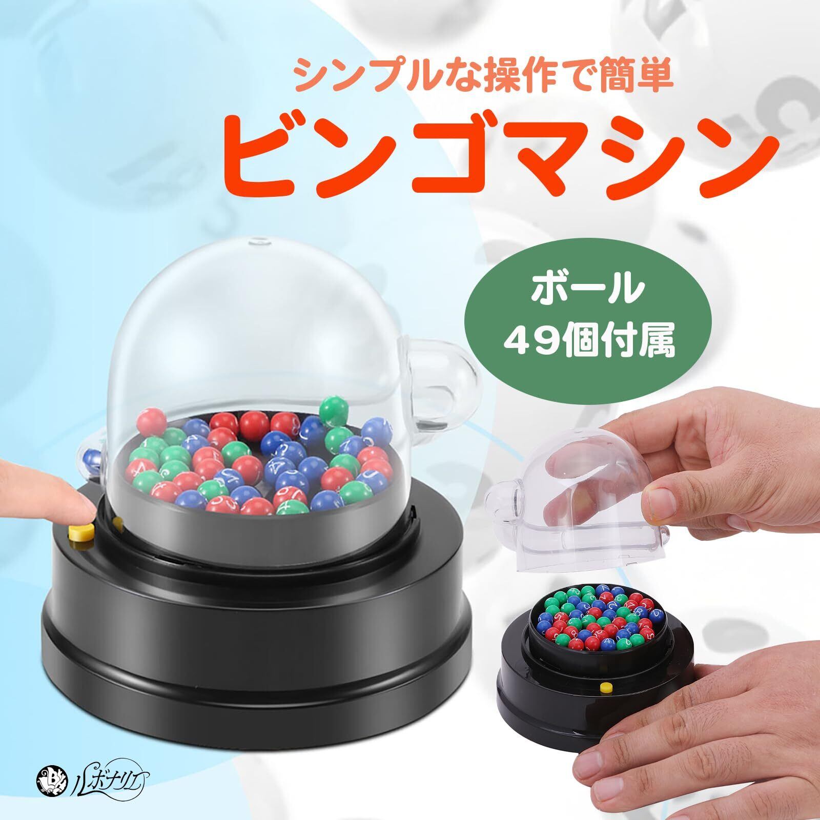 【楽しい抽選体験を提供!ルボナリエ ビンゴマシーン!】 : 「ルボナリエ ビンゴマシーン」は、電動でスムーズに抽選を行えるビンゴゲームセットです。透明なデザインにより、参加者は公平で透明な抽選を楽しむことができ、友達や家族との集まりやイベントを盛り上げます!3色のカラーバリエーションからお好きな色を選んで、楽しいひとときを演出しましょう!