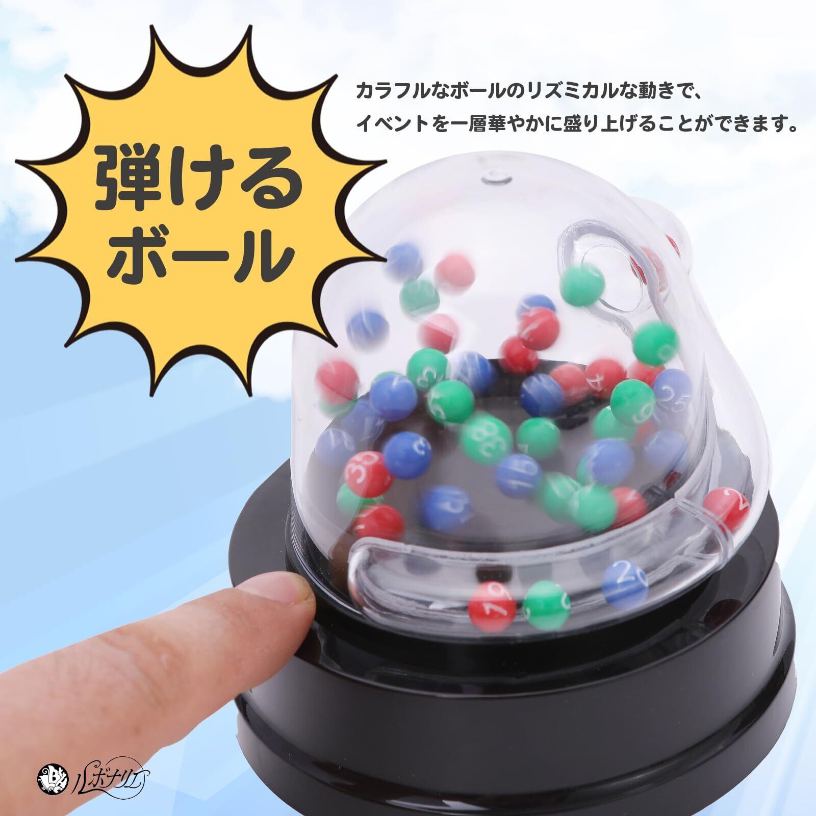 【手軽に楽しめる!】 : 本商品は使いやすさにこだわり、電動式でスピーディーな抽選を実現しています。ボタン一つで簡単に運転ができ、初めてビンゴゲームを楽しむ方でも安心してご利用いただけます。大人数でのイベントやパーティーなど、幅広いシーンで活躍すること間違いなしです。