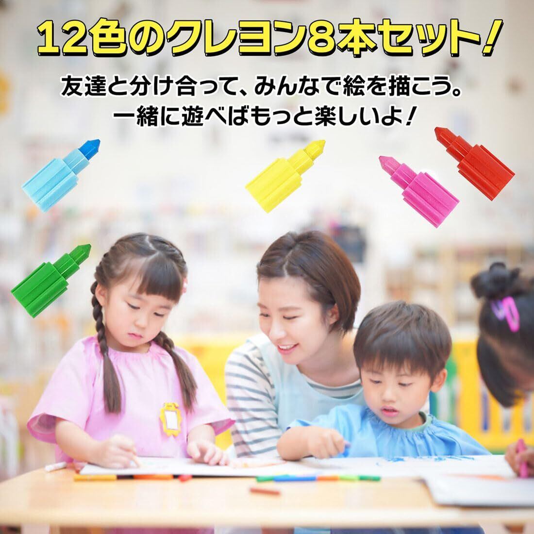 《カラフルなクレヨンで、みんなで楽しいお絵描きタイムを!》 このクレヨンは1セットに8本入っており、それぞれが10色の鮮やかな色を持っています。これを使えば、一人でたくさんの色を使って素敵な絵を描くことができます。また、たくさんの本数があるので、友達と一緒に使うこともできます。お友達と一緒にクレヨンを分け合って、みんなで同じテーマのお絵描きをしてみましょう。