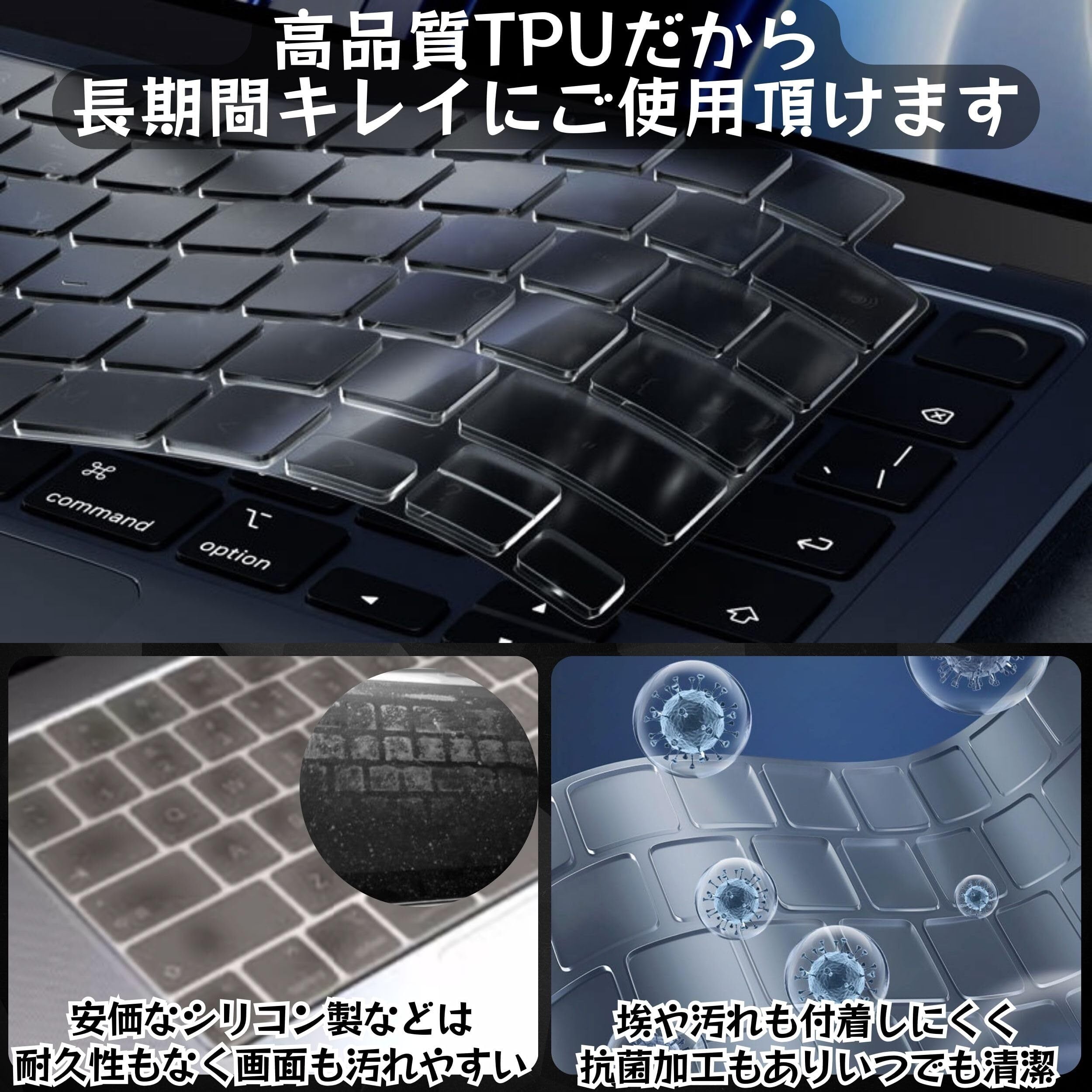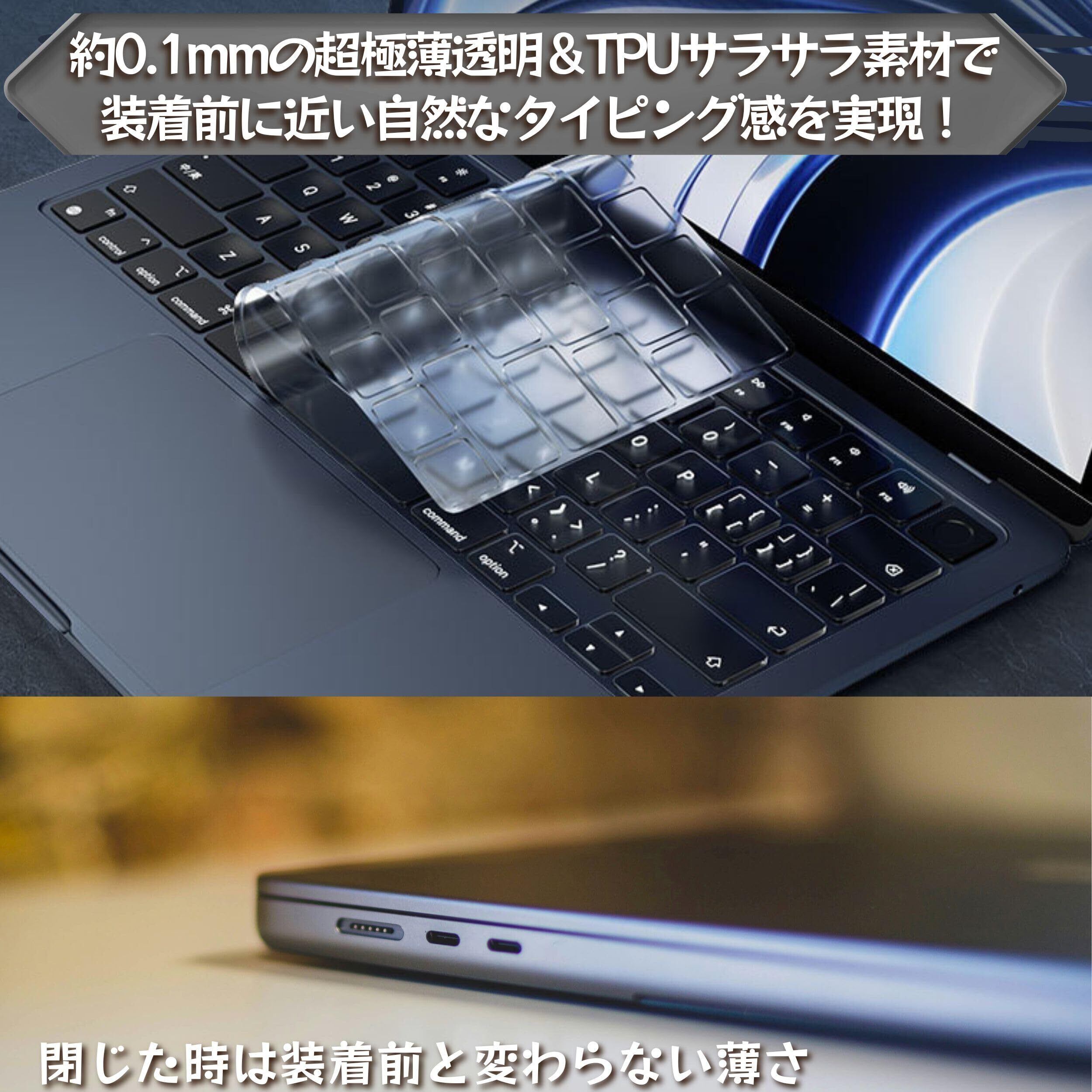 Macbook Pro/Air M2 M3 対応 キーボードカバー 日本品 【US配列】 TPU超極薄 (2021-2024)型番 耐水 耐塵 A3113/A2991/A2992/A2779/A2780/A2442/A2485/A2941/A2681 (クリア)