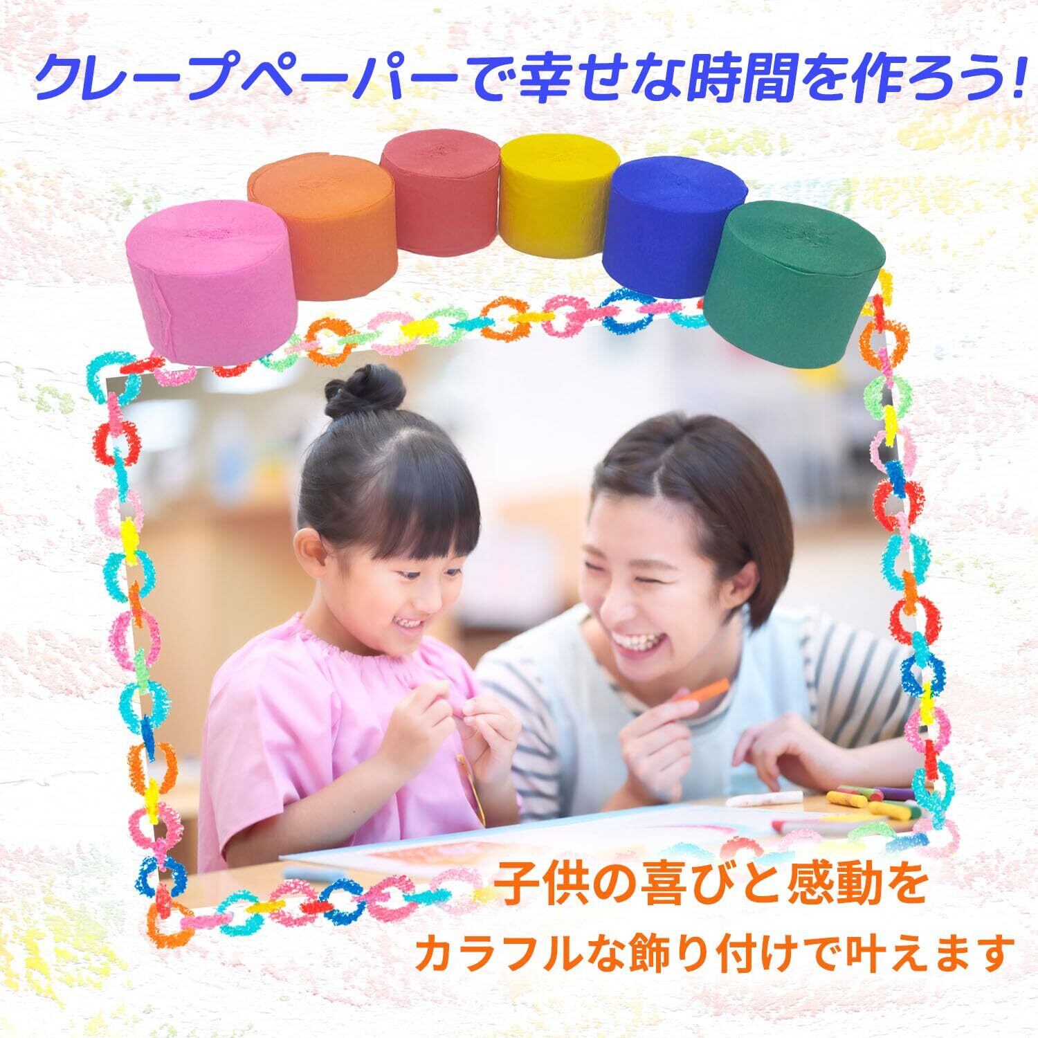 【6色の豊富なカラーで飾りつけ】レッド、オレンジ、イエロー、ブルー、グリーン、ピンクの色彩が鮮やかに輝きます。6色のロール型になっていて使いやすさにも配慮されています。カラフルなクレープペーパーで、明るく楽しい雰囲気を作れます。
