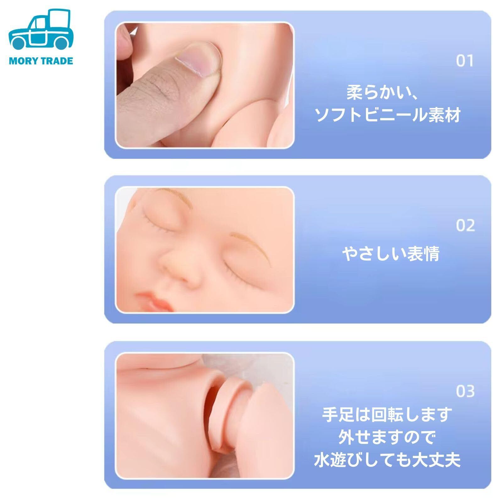 本物の赤ちゃんのような顔立ちとディテール。優しく眠る表情がとても可愛らしく、見ているだけで癒されます。
