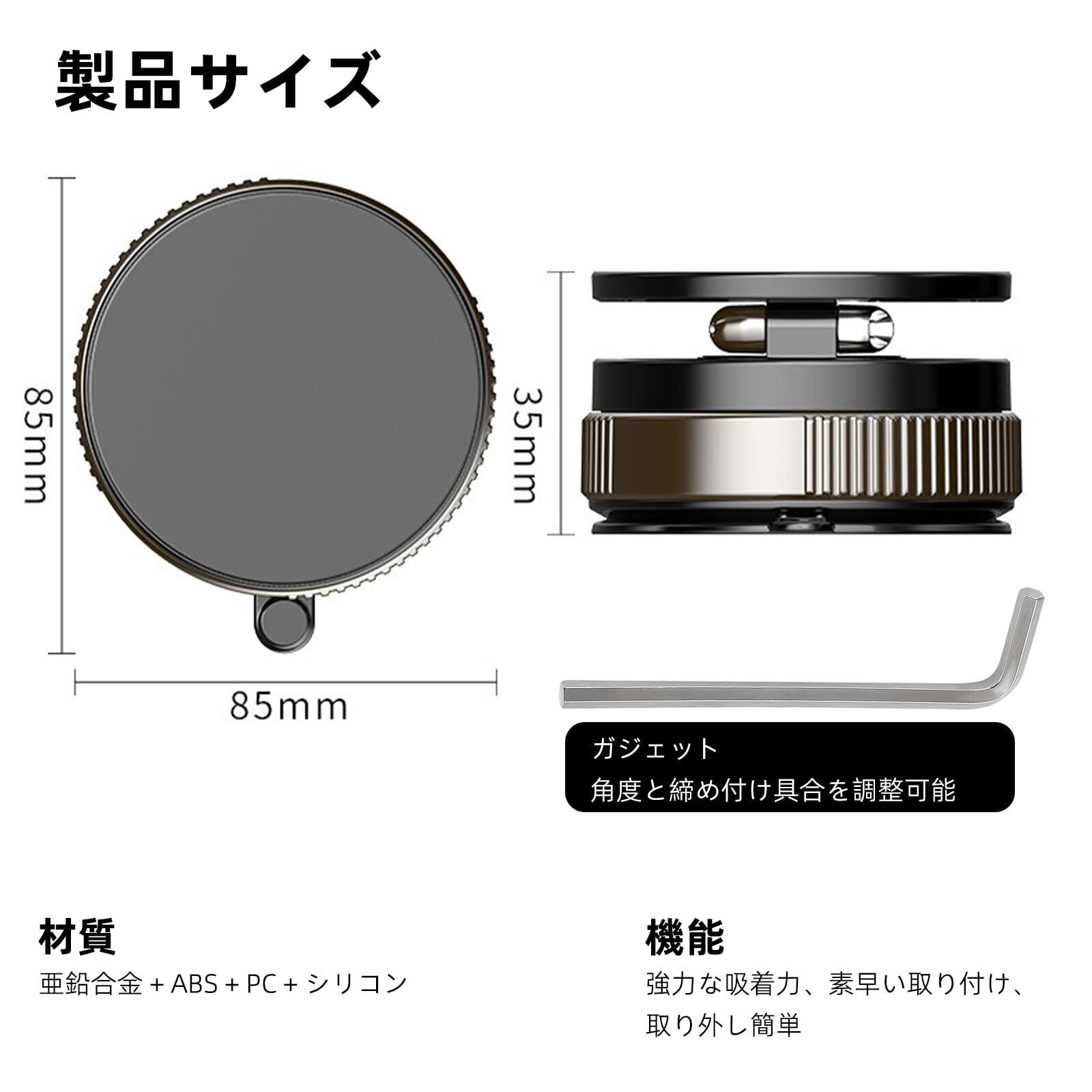 ● 特徴:真空吸盤・360°回転・180°調整・片手操作・高端アルミ合金製