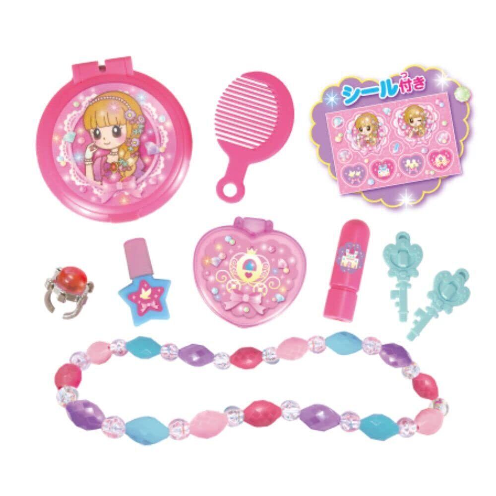 商品内容:ケース、コーム、指輪、コンパクト、ネイルボトル(中身はありません)、リップ(中身はありません)、アイシャドウ(色は尽きません)、ネックレス、シール、鍵