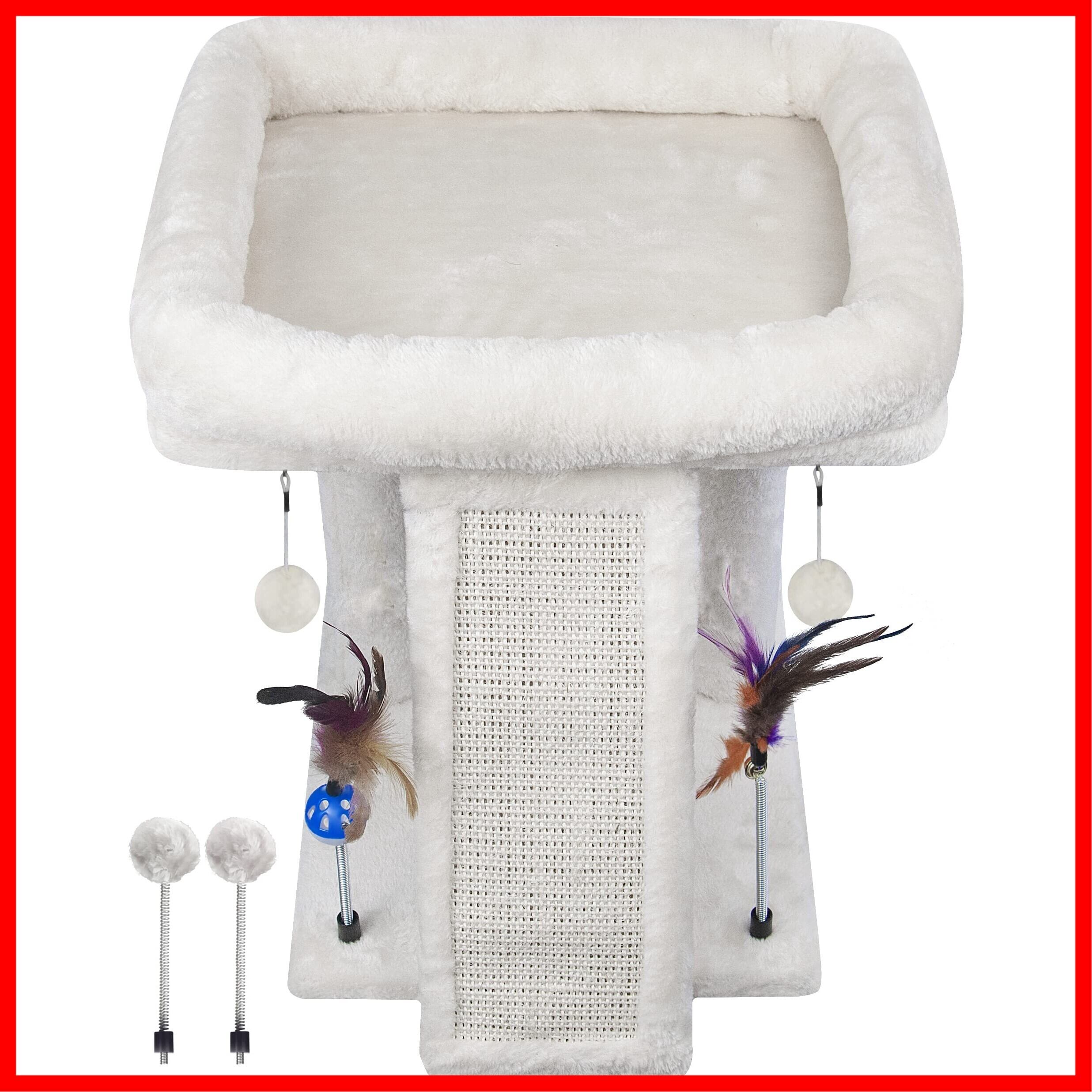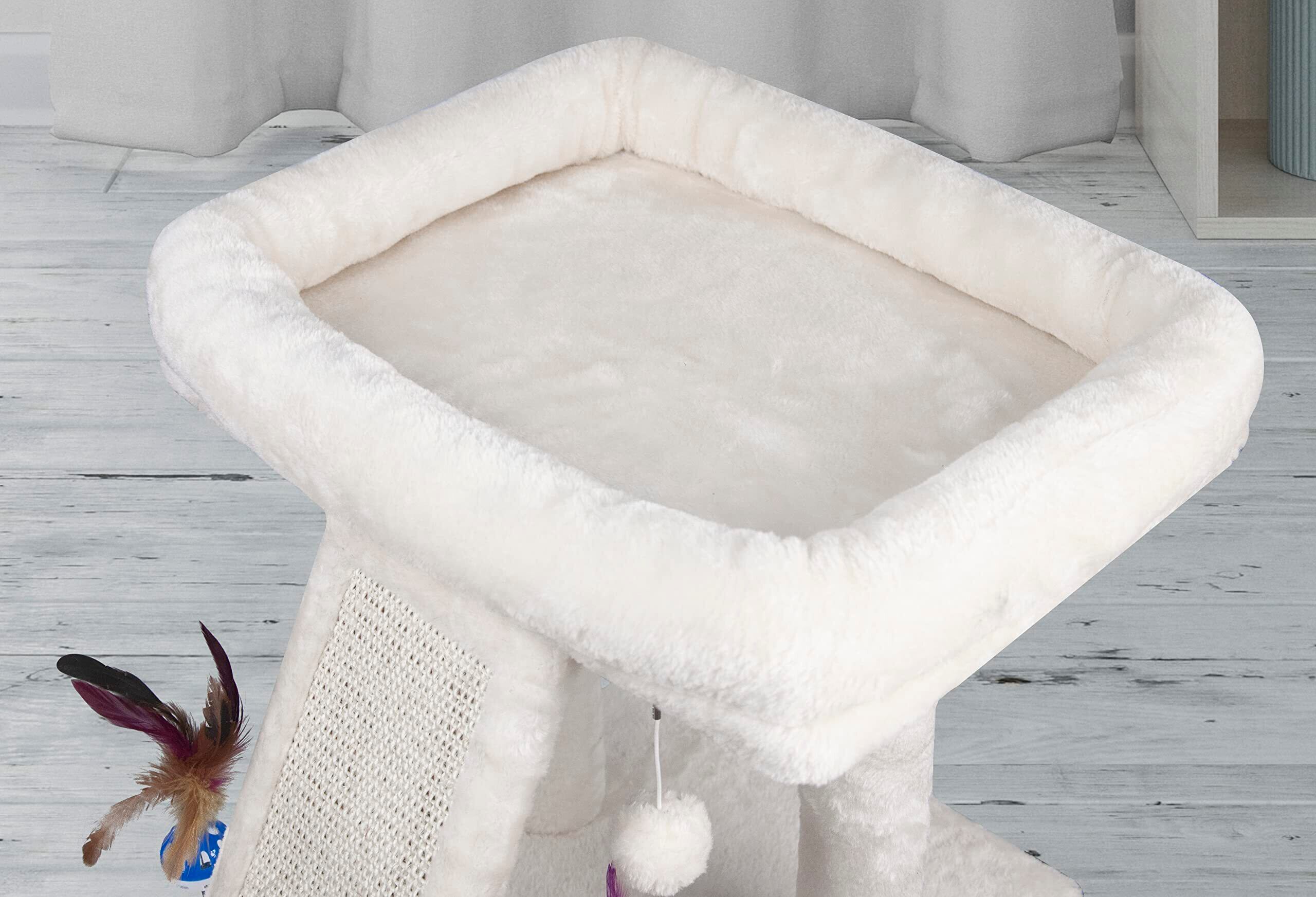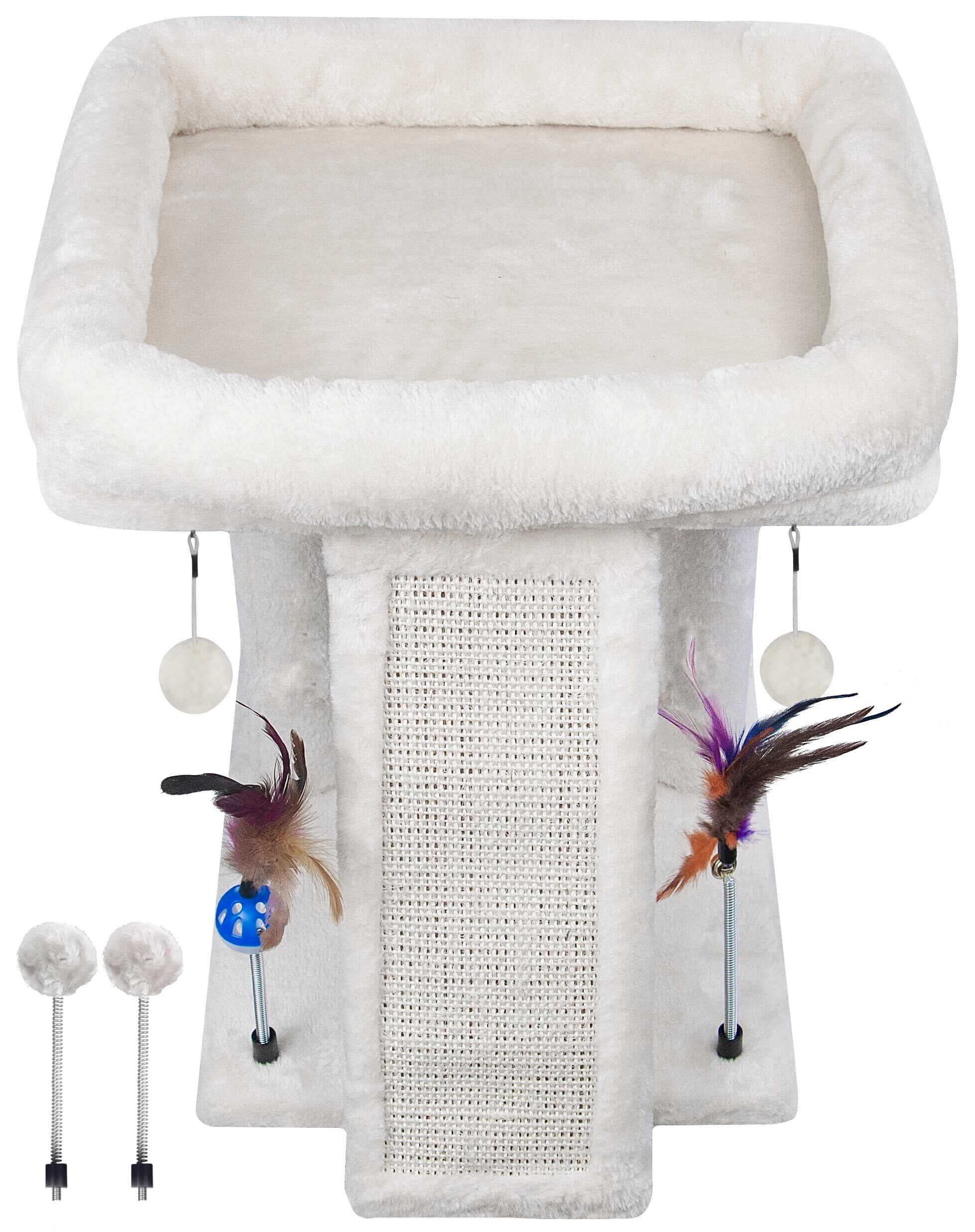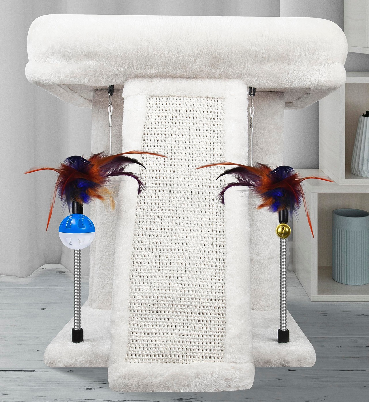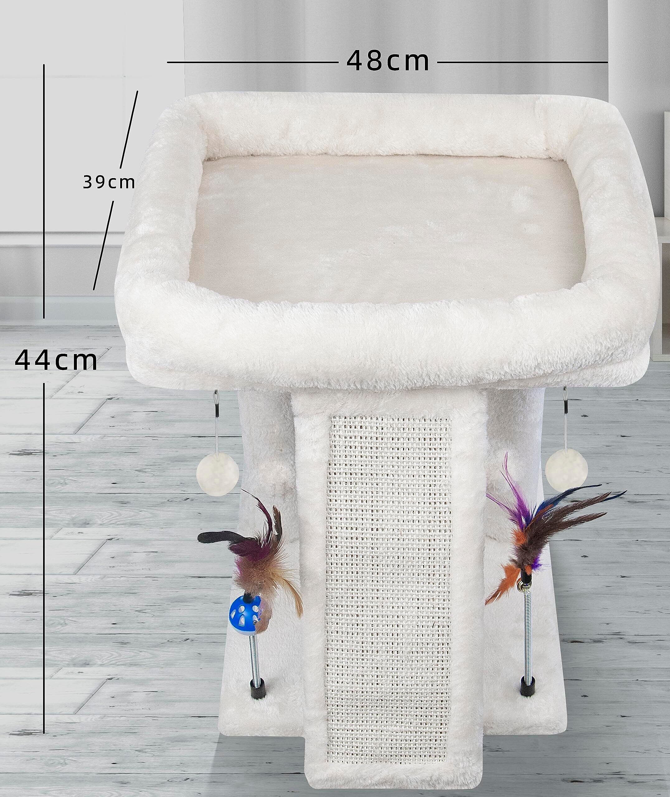 【省スペースでシンプルなデザイン!】 : 高さ44CMのコンパクト設計で、狭い場所でも簡単に設置可能。それでも猫ちゃんが飛び跳ねたり、遊んだりするには十分なスペースを確保しています。また、遊び心満載のおもちゃ付きで、猫ちゃんも大満足です!