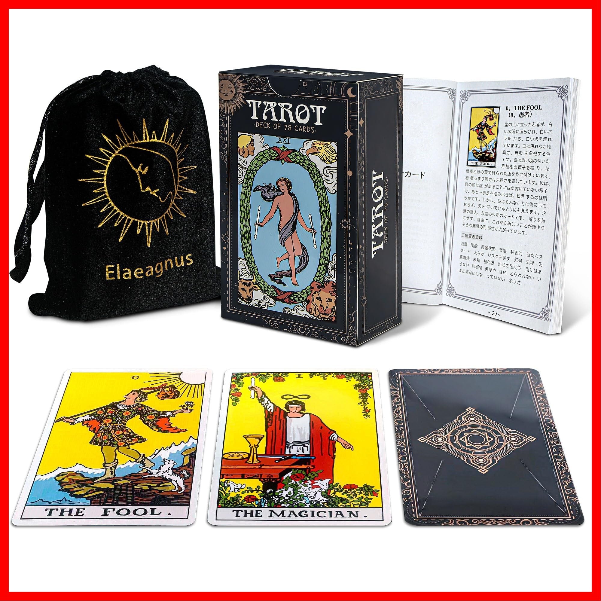 Elaeagnus タロットカード 初心者向け 78枚 ウェイト版 ライダー版 日本語解説書付き たろつとカード タロット カード 占卜 tarot ベルベットバッグ