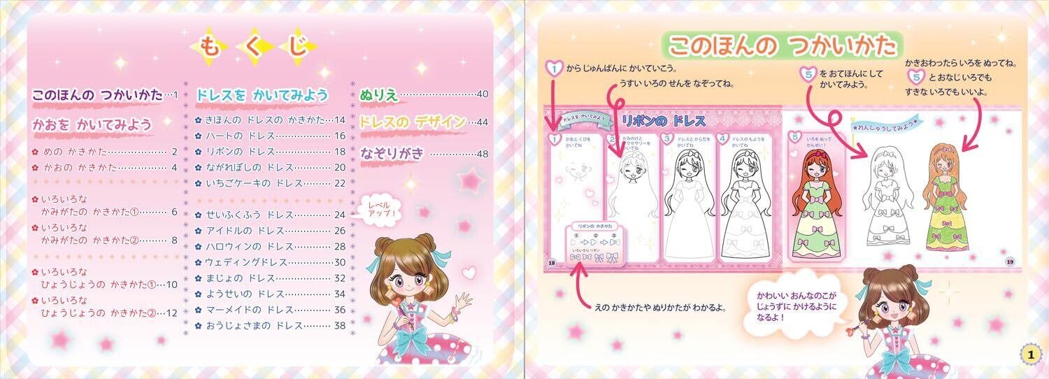 【内容】かわいい女の子のかきかたをレッスンして、じょうずになるコツを教えてくれます。デザイナーのワンポイントアドバイス付きで、ぬりえからドレスのデザインまで、レベルアップを目指せます!
