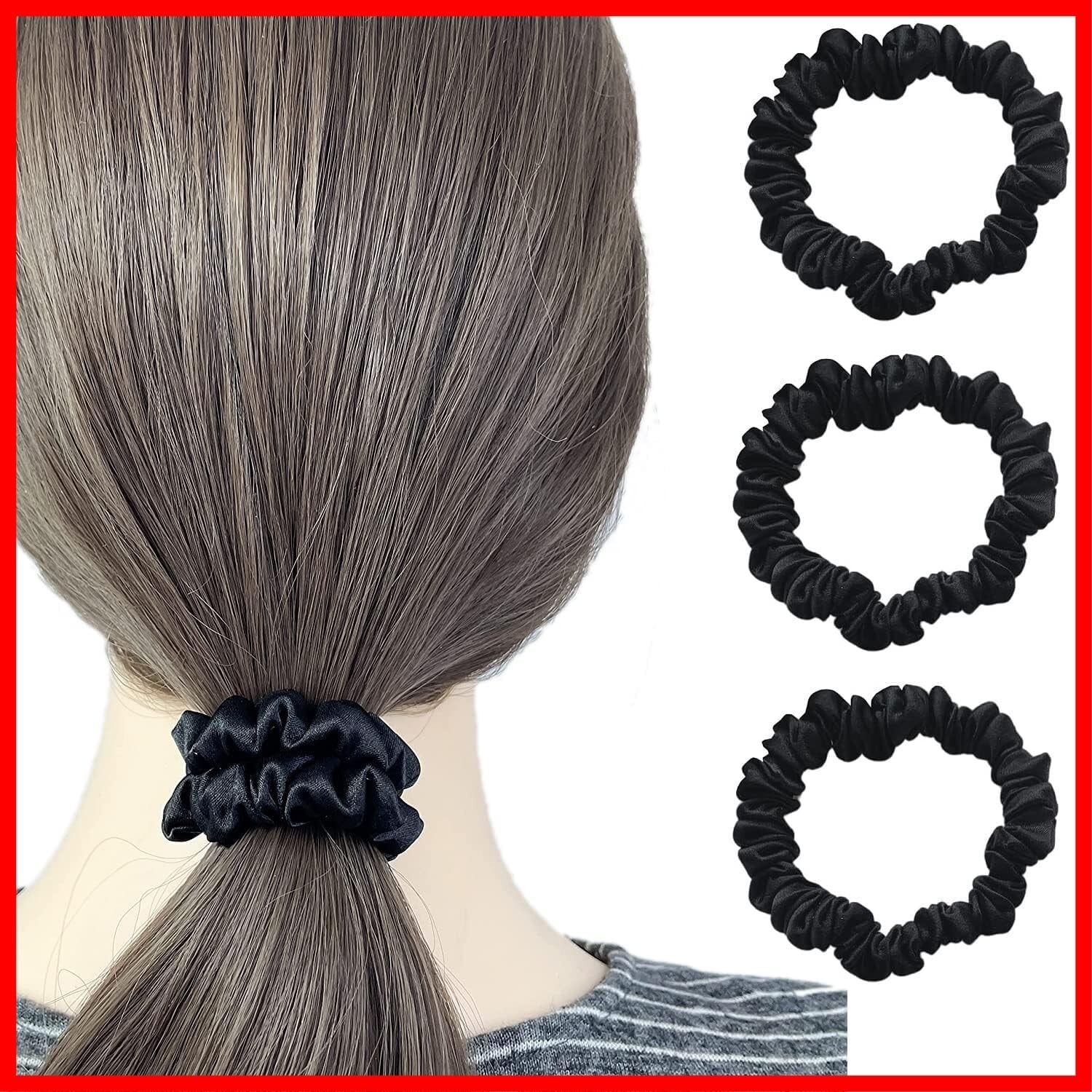YINKE ヘアゴム シュシュ シルク 髪ゴム 跡がつかないヘアゴム 髪留め 髪ゴム ヘアリング 髪束ね おしゃれ 大人 簡約 高弾性 シンプル 3個セット (ブラック)