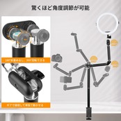 【角度やアーム長さの自由調節】本カメラスタンドにはギアで接続して単独で動かせるジョイントが3つ搭載、それぞれ180度折り畳めるし、360度回転します。アームの角度や長さ、ヘッドの高さなどは自由調節可能です。