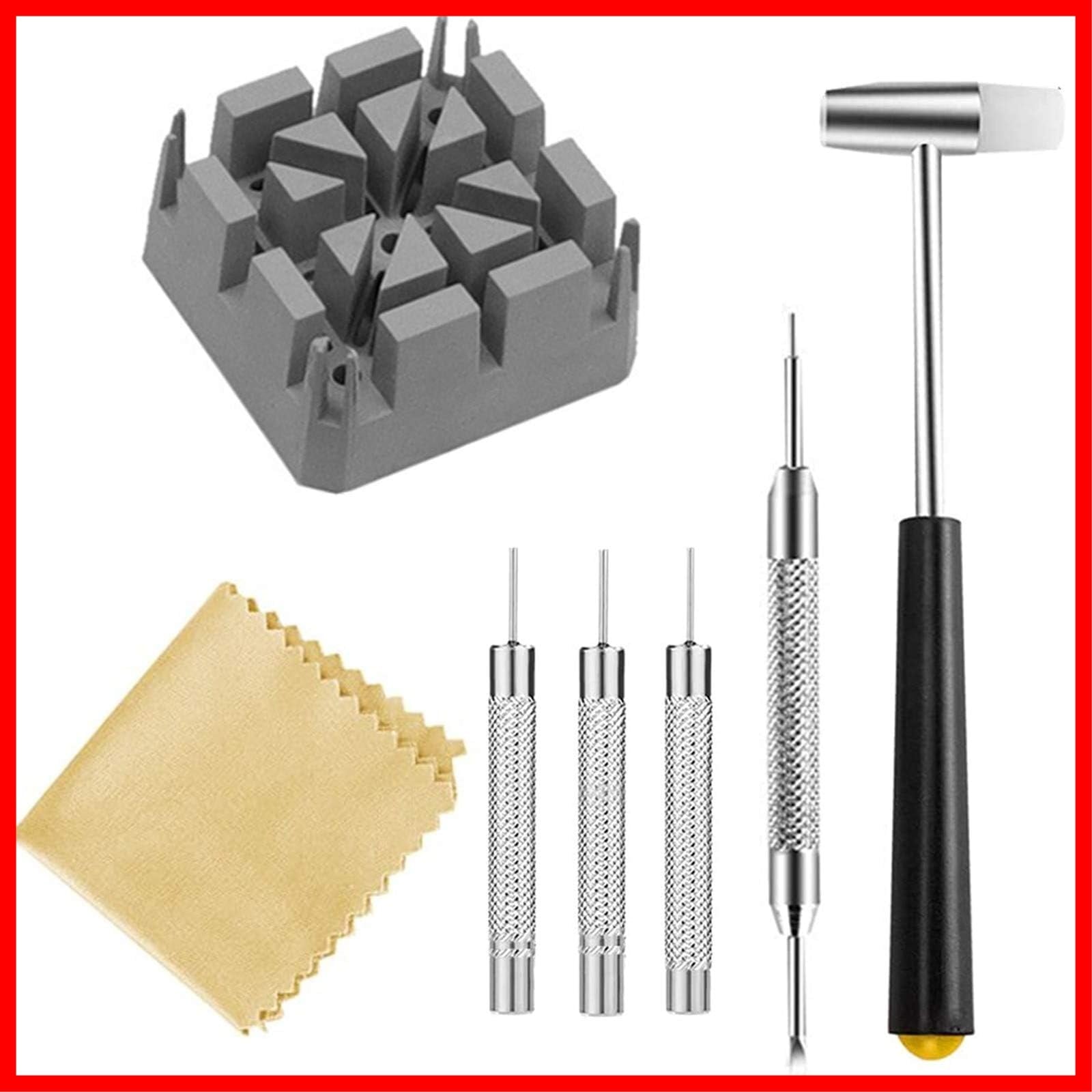 セット内容:金属ハンマー*1 バネ外棒*1 バネ外器交換用ビット*3 腕時計ホルダー*1 極細繊維クロス 1枚。