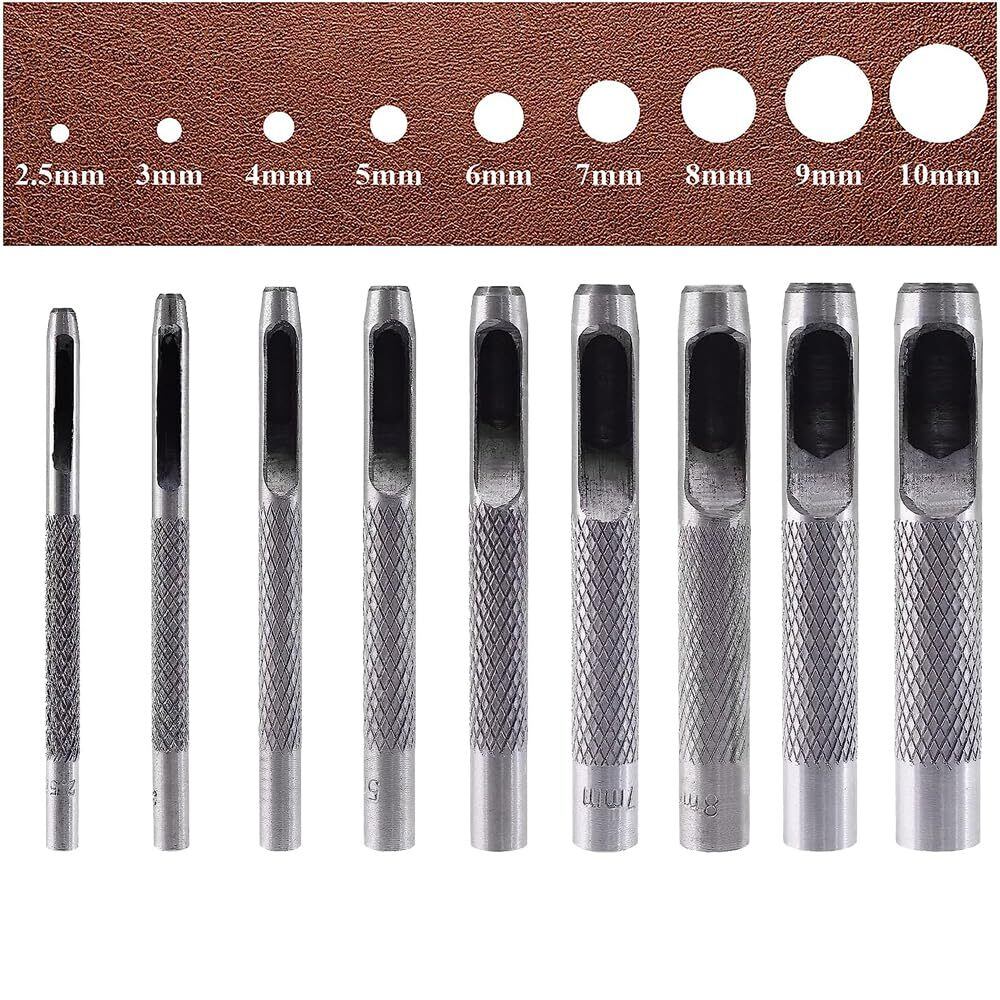 BTtime 穴あけポンチ (2.5mm 3mm 4mm 5mm 6mm 7mm 8mm 9mm 10mm) 9本セット 丸形 打ち抜きポンチ レザークラフト DIY 穴あけ道具 | hananoki