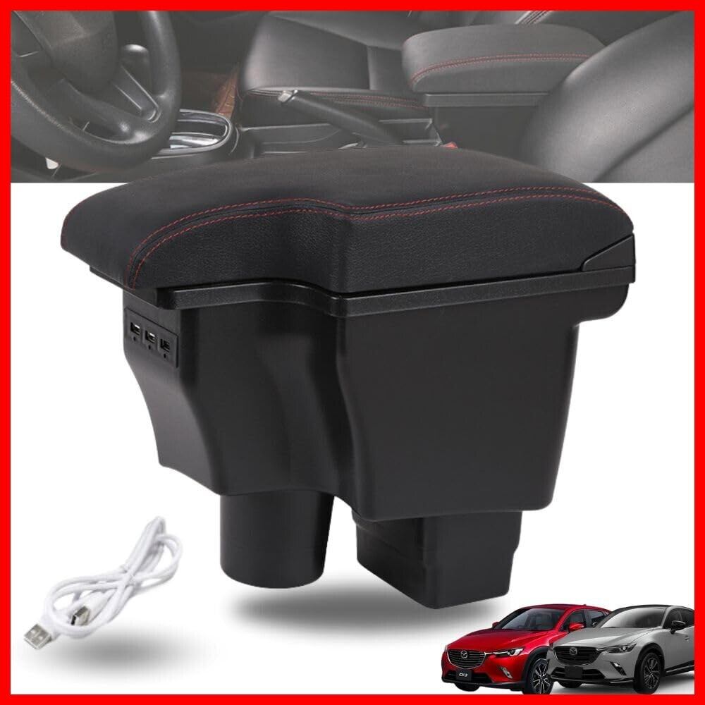 one+lifestyle マツダ CX-3 DK5/デミオ DJ3 DJ5 対応 アームレスト コンソールボックス USBポート付 (レッドライン)