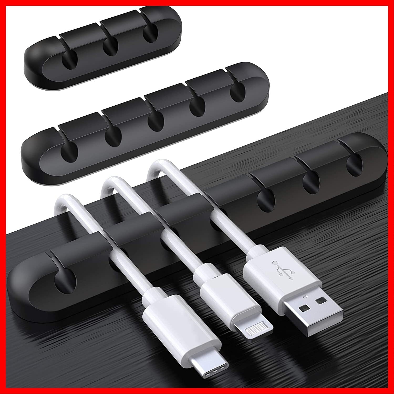 ● 商品名:[SOULWIT 3本入れ ケーブルホルダー ケーブルクリップ ライトニングケーブル USBケーブル 充電ケーブル ヘッドフォンケーブル マウス配線 キーボード配線 デスクコード 整理用 両面テープ クリップ (ブラック-357穴)]