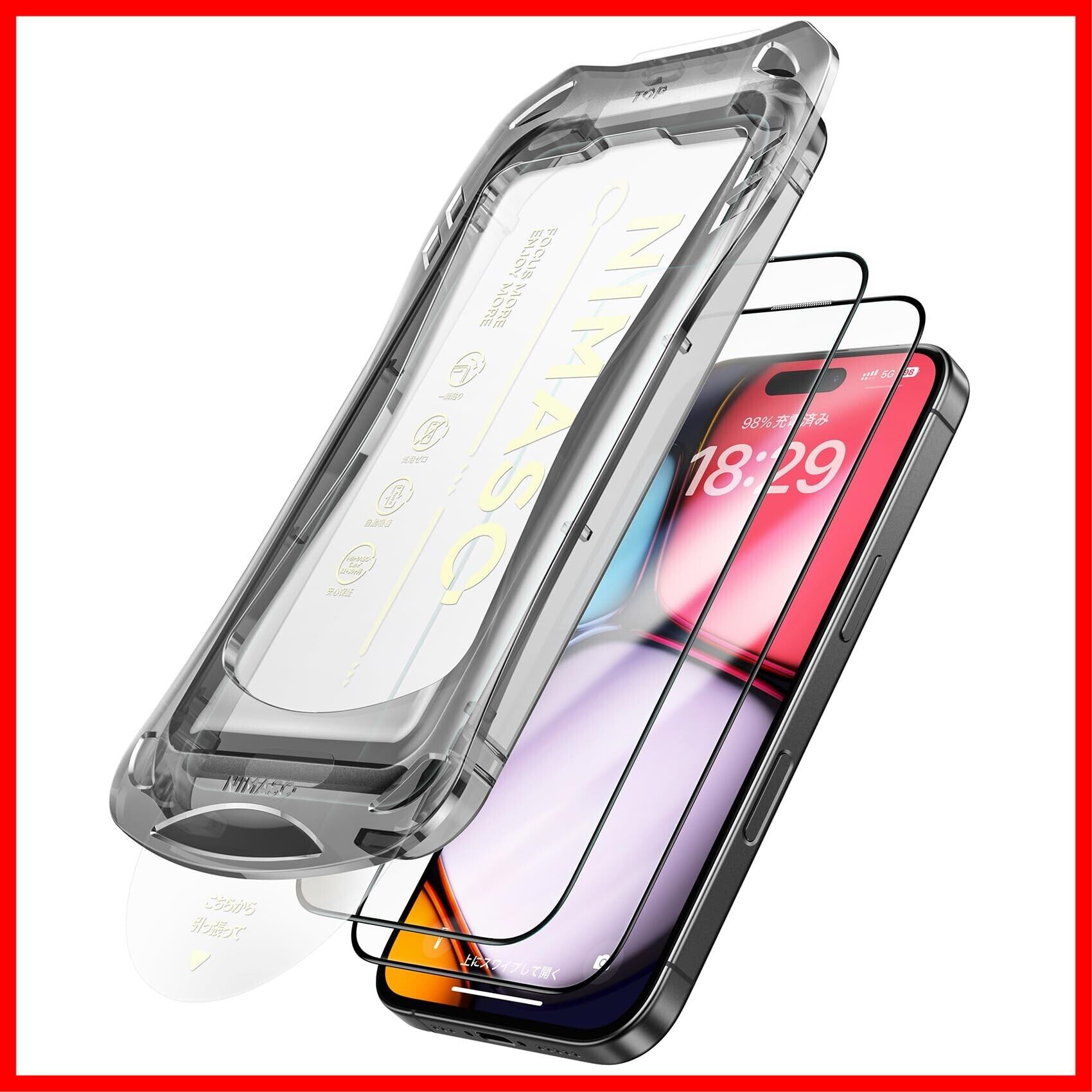 NIMASO ガラスフィルム iPhone 16 Pro Max用 強化ガラス 黒縁 全面 保護フィルム 自動除塵 超簡単貼り付け 耐衝撃 指紋防止 ガイド枠付き 2枚セット アイフォン16プロマックス 対応(6.9インチ)DSP24G1365