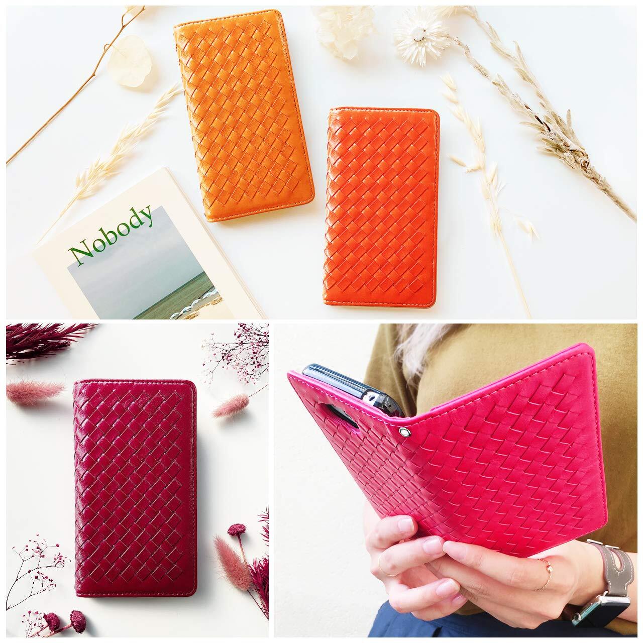 【優れた耐久性と安心の品質!】 : 高品質なフェイクレザー素材を使用しており、耐久性にも優れているため、毎日の使用に適しています。2つ折りのデザインは開閉がスムーズで、あなたのスマートフォンをしっかりと保護しながらスタイリッシュに演出します。特に編み込みデザインが目を引きます。