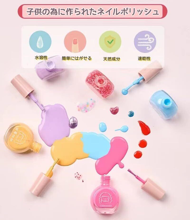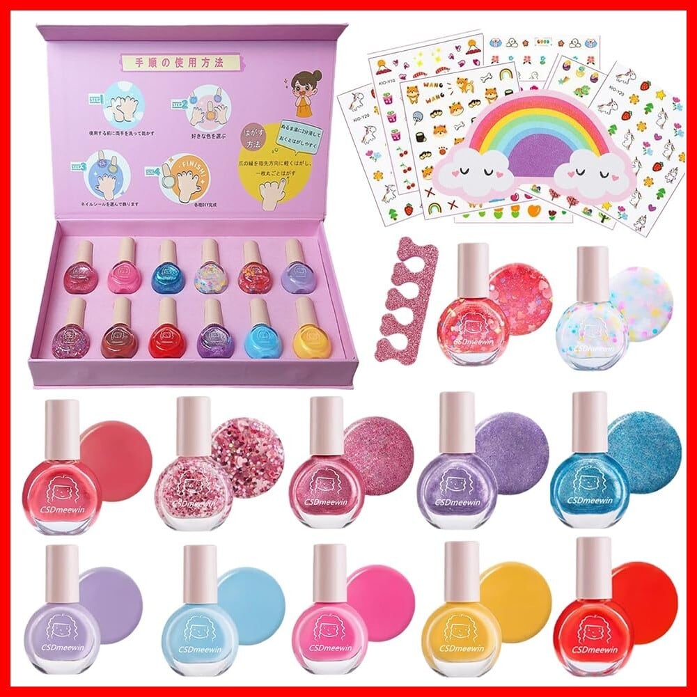 CSDmeewin マニキュア 子供用 はがせるタイプ ネイルポリッシュ ネイルアート用品 12色セット トップコート お誕生日 プレゼント用