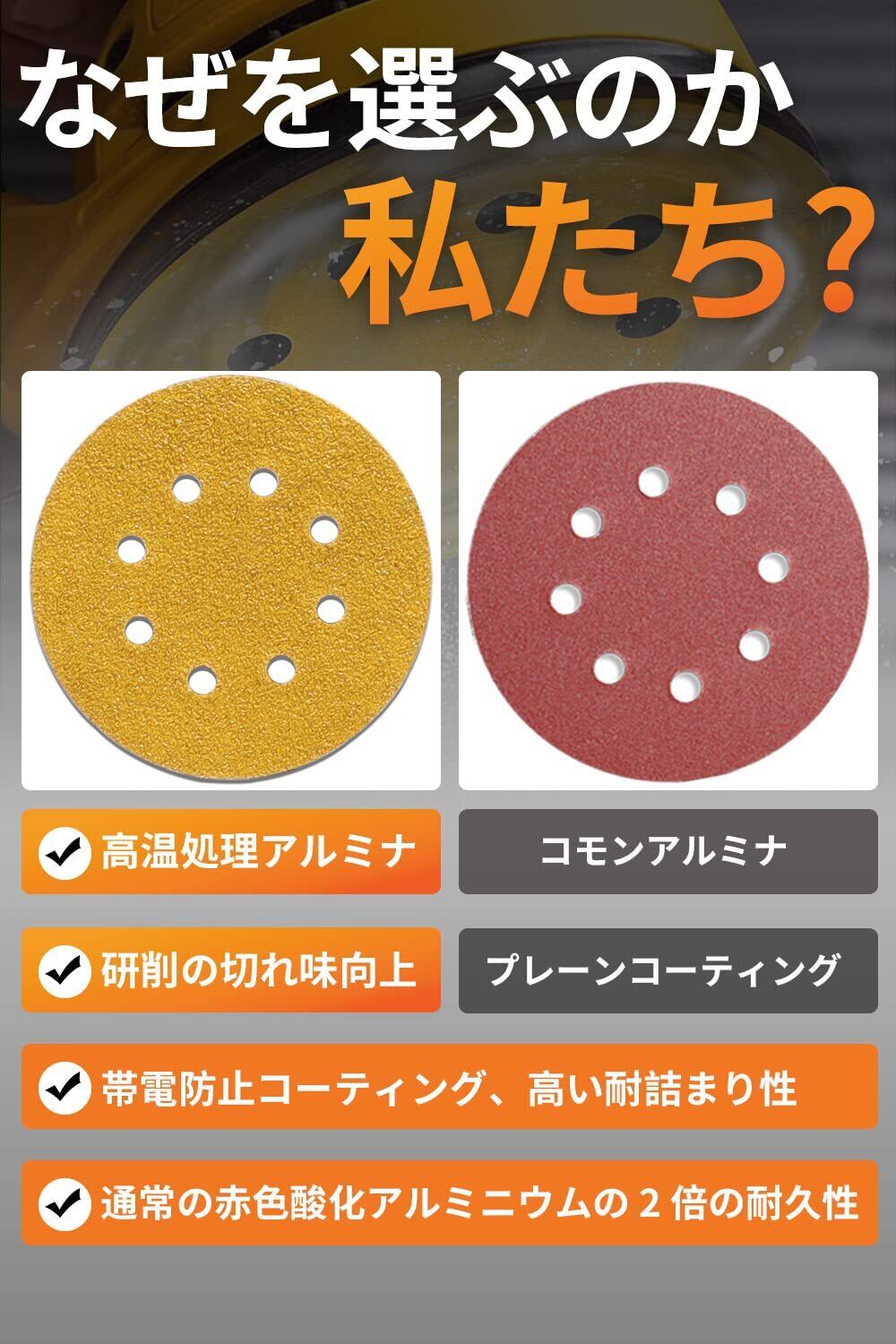 【マジックテープ式】マジック式研磨紙で簡単に交換ができます、密着性に優れ 高速で耐久性のあるサンディングを提供することで、集塵用に8つの穴を事前に打ち抜きます 穴の位置も正確でした目詰まりしにくいです
