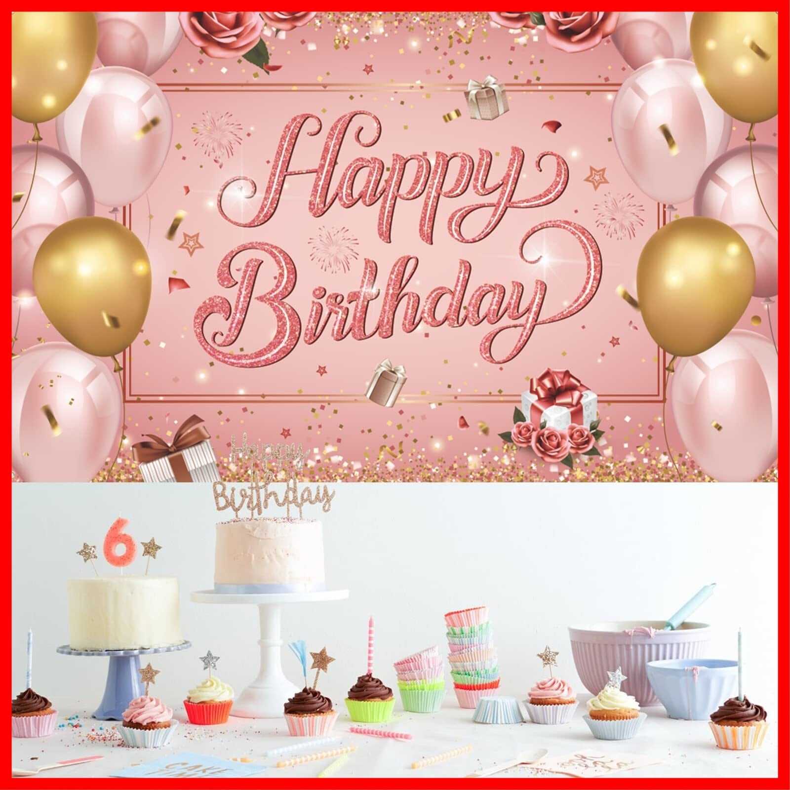 Paready バースデー タペストリー 誕生日 飾り付け 壁掛け フォトポスター 写真背景 壁飾り 大判 横 Happy Birthday おしゃれ 装飾 デコレーション パーティー お祝い 女の子 男の子 ローズゴルード