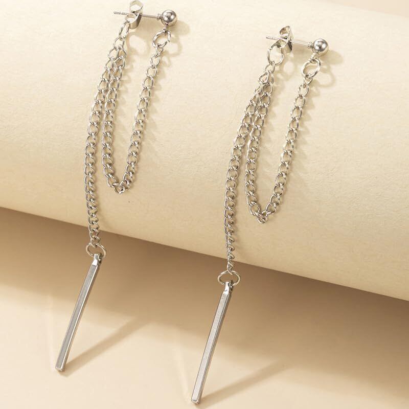 ピアス スティック チェーン タイプ 垂れ下がり 両耳用2つ入り 韓国ファッション 棒ピアス オルチャン