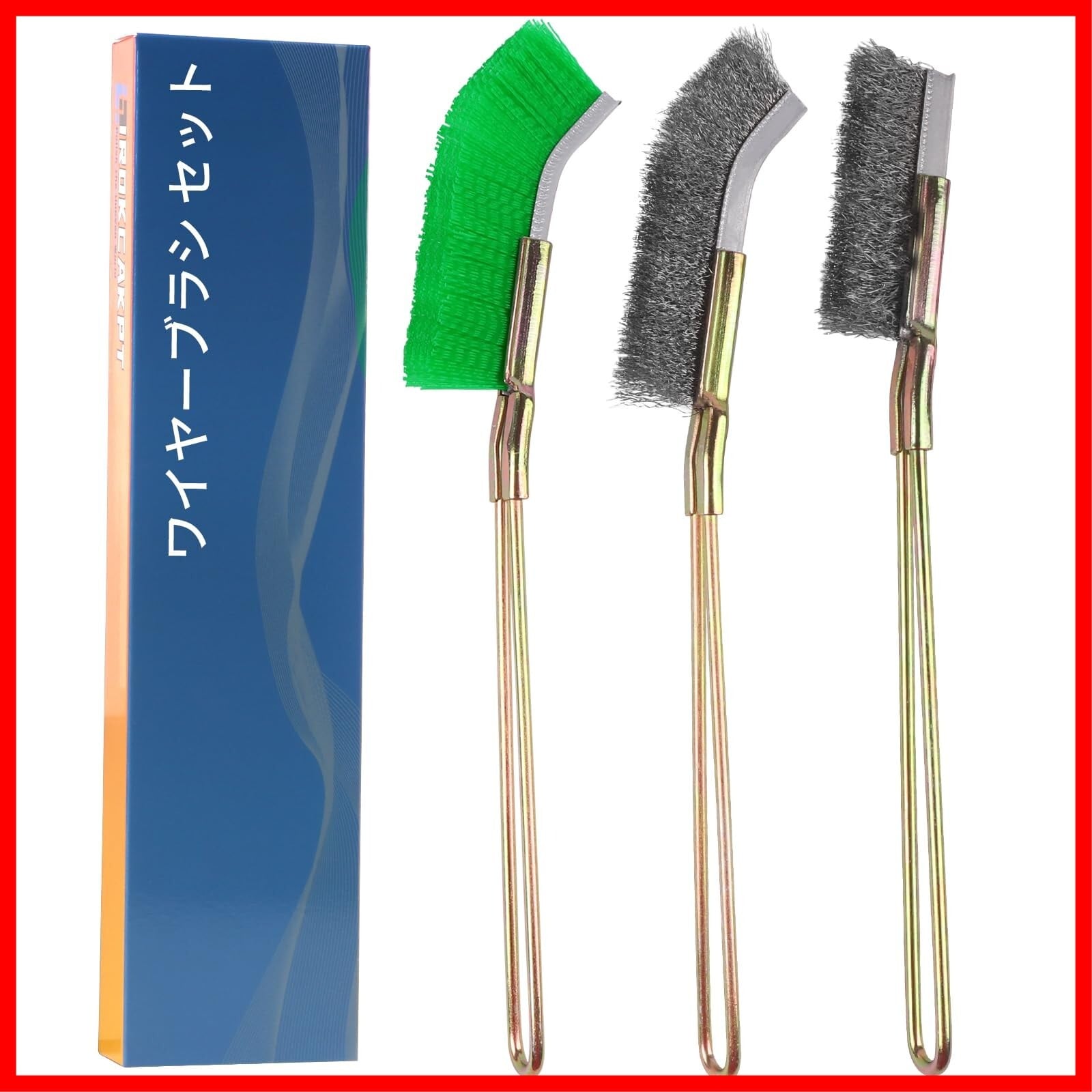先曲りと直型ステンレスワイヤーブラシ x2、先曲りナイロンブラシ x1を含む。異なるブラシの組み合わせ-より便利に、よりお求めやすく