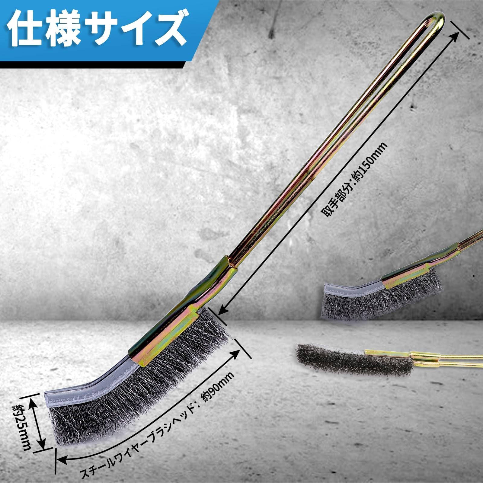 ハンディーブラシ全長:約240mm 取手部分:約150mm スチールワイヤーブラシヘッド:約90mm
