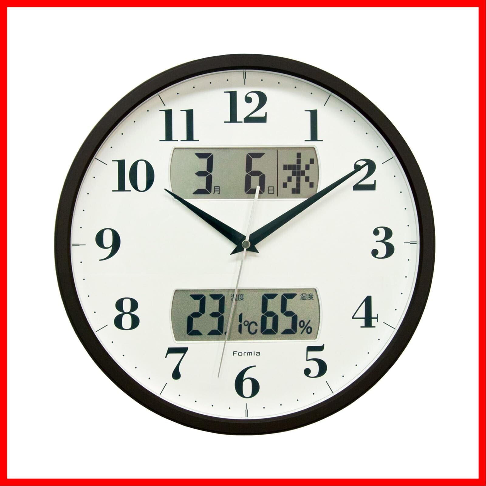 Formia(フォルミア) 掛け時計 時計 壁掛け 電波時計 静音 温度 湿度 温湿度計 日付 カレンダー 曜日 夜間秒針停止 アナログ 保土ヶ谷電子販売 ブラウン HWC-001