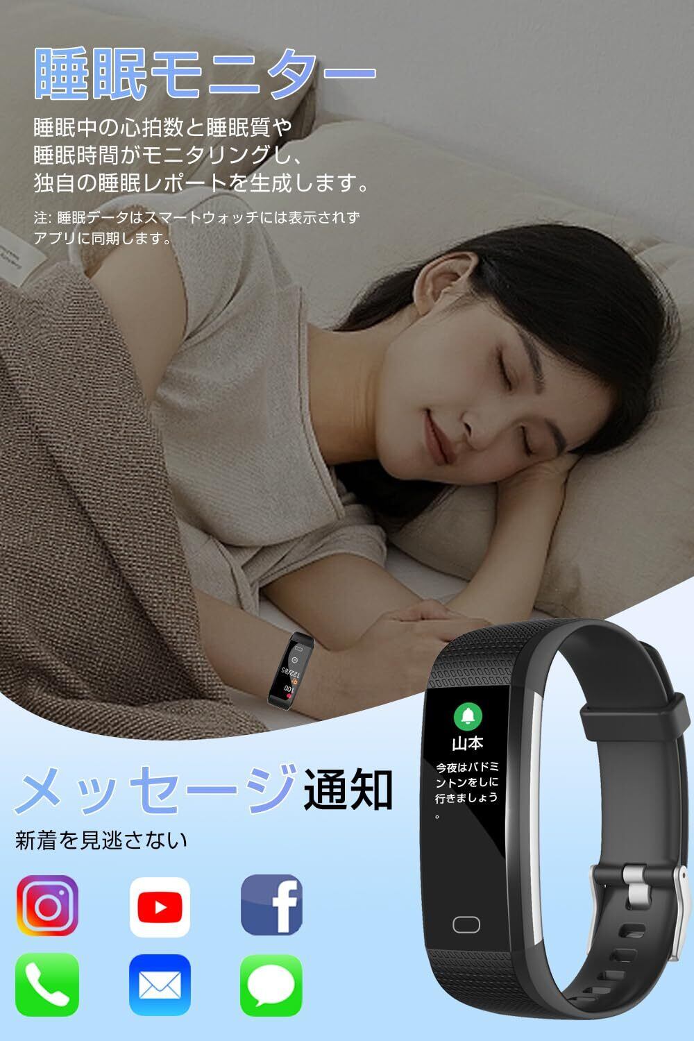 SLuB スマートウォッチ【2025進化モデル】IP68防水 防塵 心拍計 歩数計 消費カロリー 睡眠検測 運動記録 カラースクリーン アプリ通知 アラーム 座りがち注意 多機能スマートブレスレット 腕時計 iphone&Android対応(ブラック)