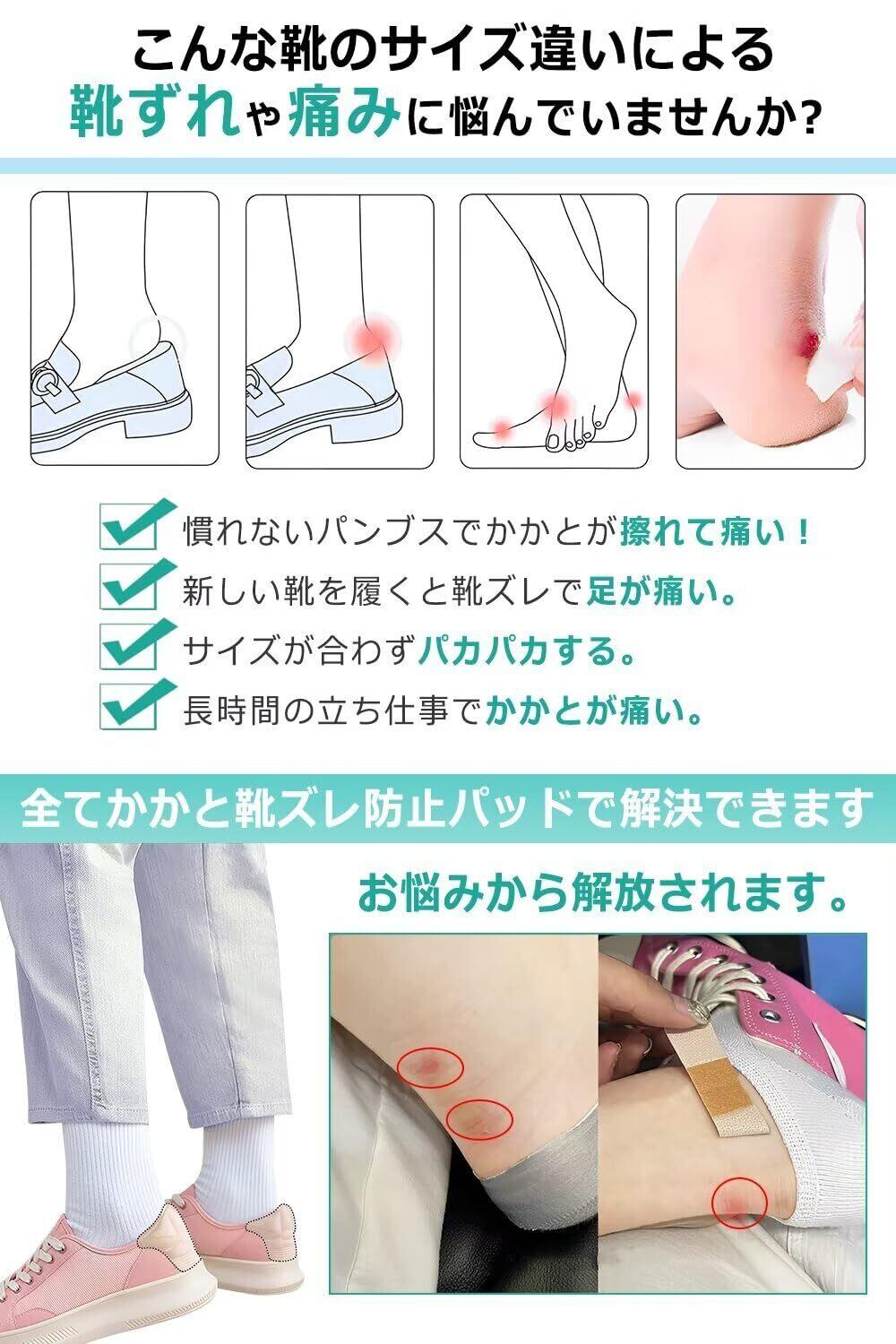 【幅広く適用】長時間の立ち仕事の方、外回りで歩き回る方、ハイヒールやパンプルをよく着用する方、靴ずれでお悩みの方、徒歩、登山、キャンプなどのアウトドア、様々なシーンに大活躍してくれます。男女兼用タイプで、お家に常備することをおすすめします。