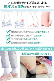 【靴の悩みを解消!かかとパッド】 : 「かかとパッド」は、靴擦れを防止し、快適な履き心地を実現するために設計されています。革靴やパンプスはもちろん、スニーカーにも適応。かかとの脱げ対策として、安心してどんなシーンででもご使用いただけます!