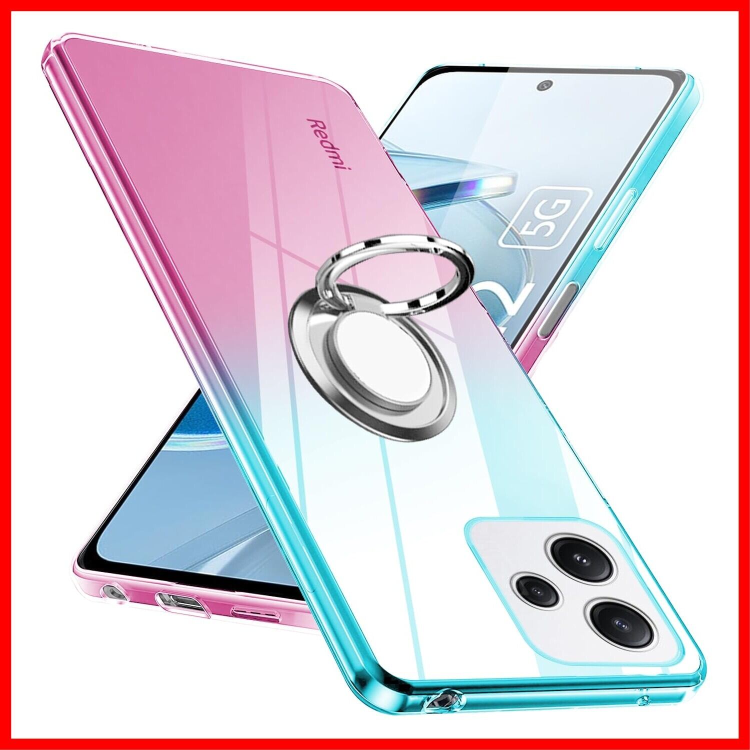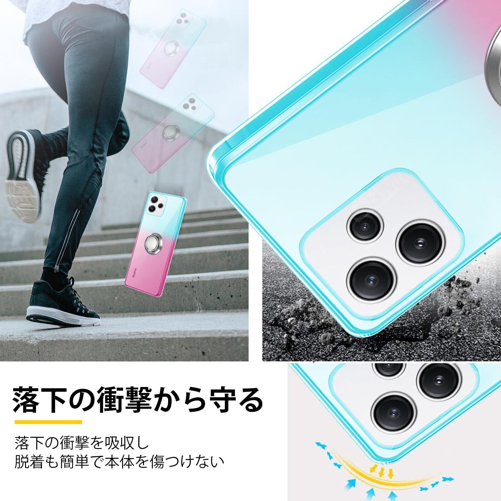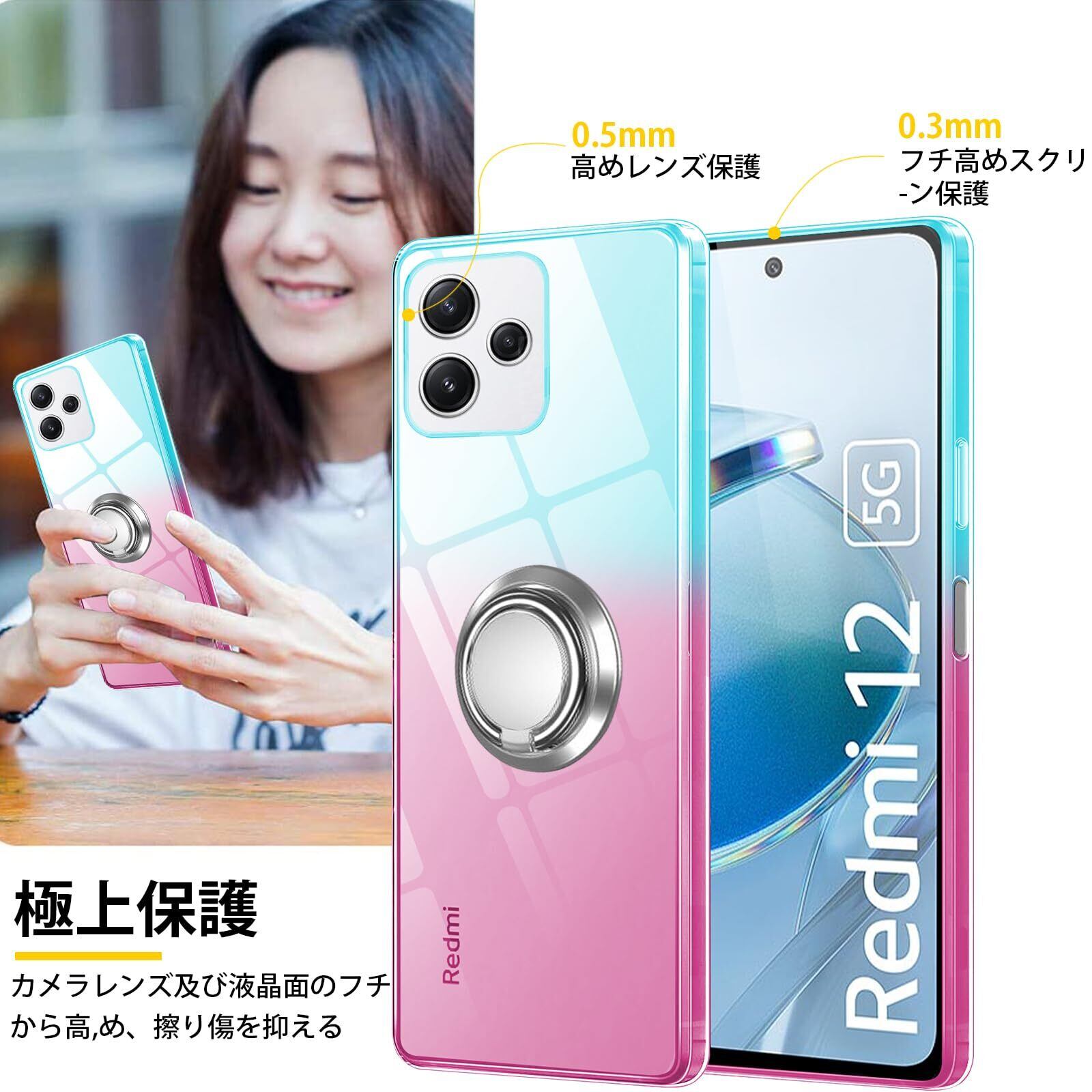 Redmi 12 5G ケース リング TPU 薄型 軽量 Redmi 12 5G カバー グラデーション色 ケース 耐衝撃 指紋防止 車載ホルダー対応 防塵 一体型 人気 携帯カバー 全面保護カバー 绿の粉