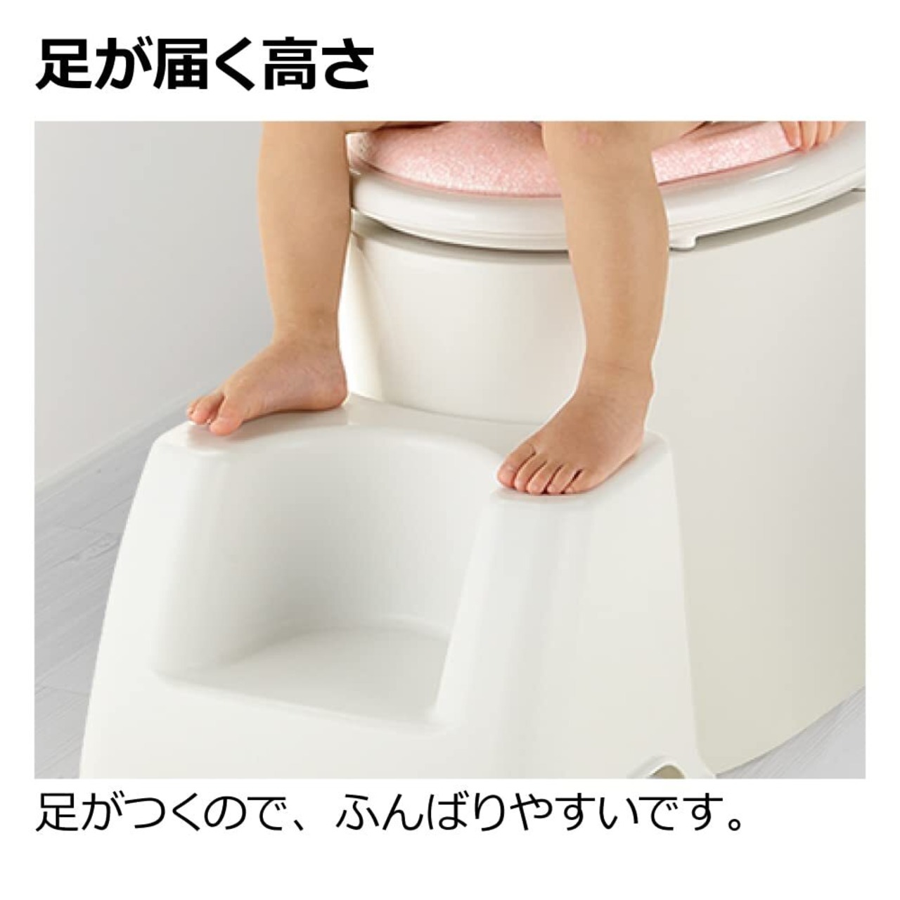 【シンプルで使いやすいデザイン!】 : どんなトイレにもフィットする洗練されたデザインで、インテリアにもなじみやすいカラー展開。お子様の自立を促す設計が施されており、使うたびにトイレが楽しい場所になります。