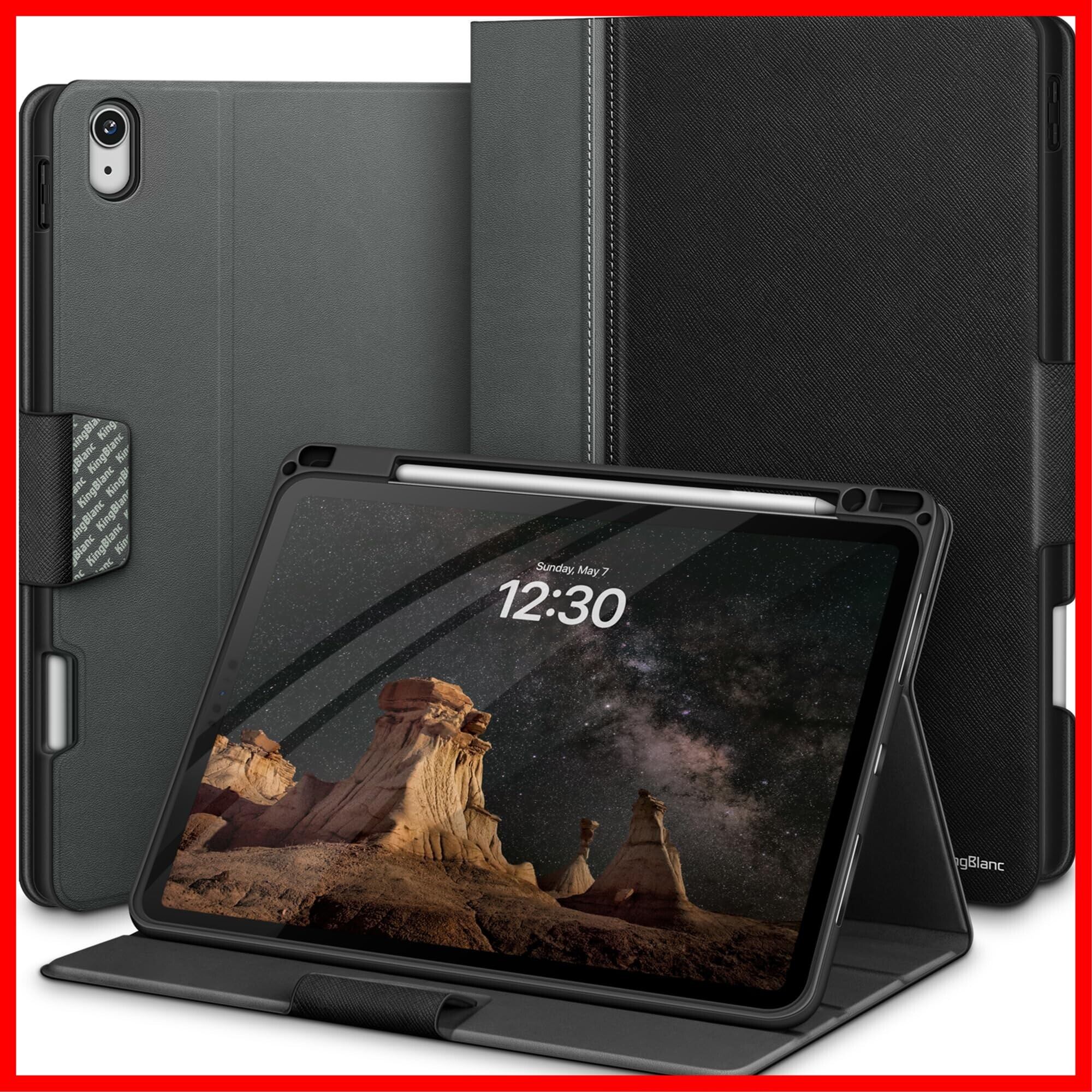 KingBlanc iPad Air 11インチ ケース (M3/M2、2025/2024)・iPad Air 第5/4世代 ケース (2022/2020) 10.9インチ 対応 手帳型 ペン収納 オートスリープ Apple Pencil Pro/USB-C対応 高級PUレザー製 絵描き角度 ペンホルダー付き 傷つけ防止 全面保護型カバー, ブラック | hananoki