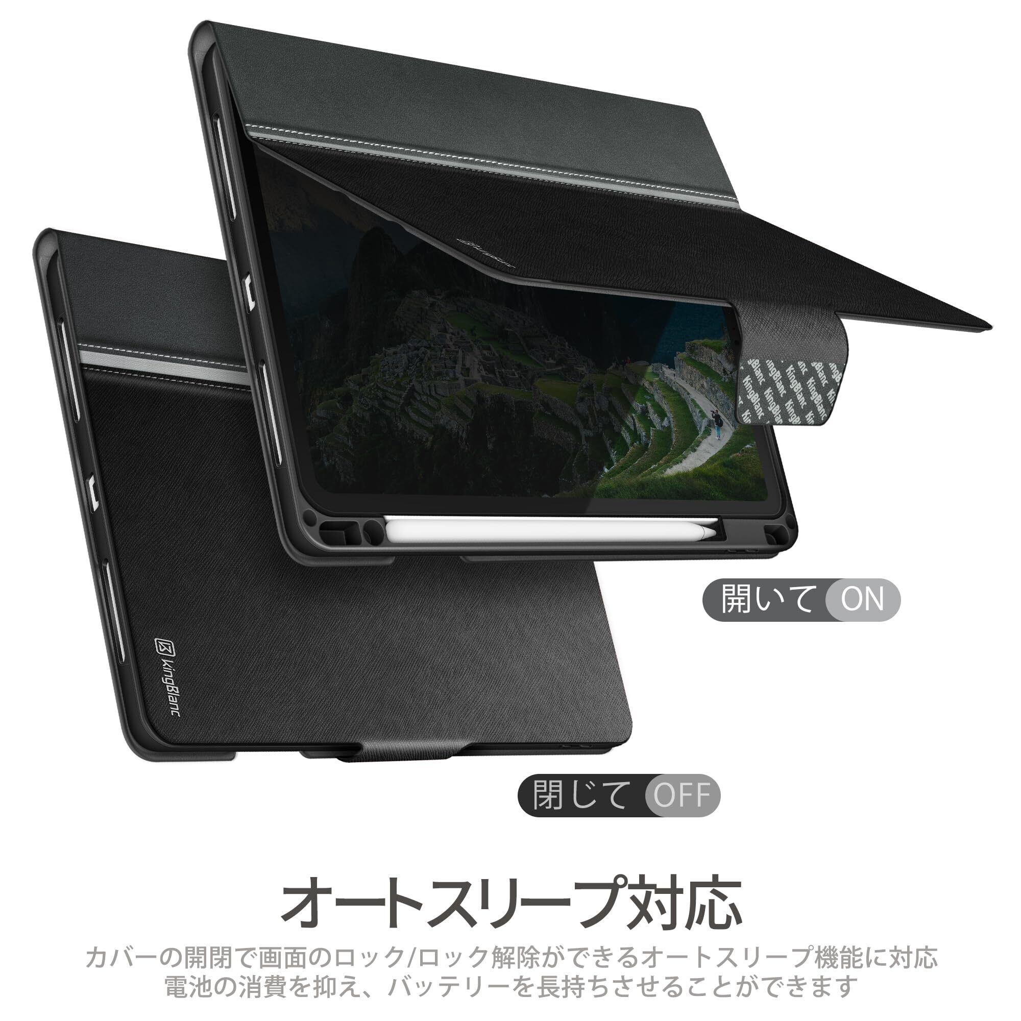 【オートスリープ/ウェイク対応】カバーを開くと画面がついて閉じると消える。iPadケースには欠かせないオートスリープ機能を搭載しています。画面がつきっぱなしになるのを防ぐため電池の節約にもつながります。バッテリーを長持ちさせることができます。