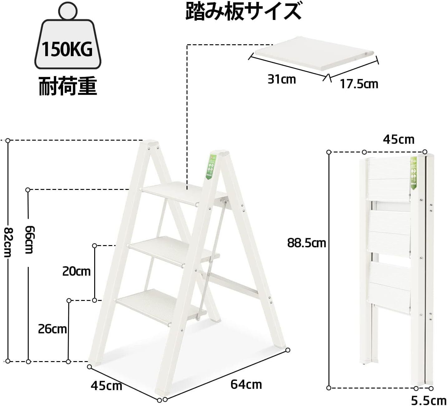 【安全性のため】踏み板の面積は広くて、表面に滑りにくいデザインを採用し、はしごの足にも滑り止めゴムが付きます。安全に使用することができます。