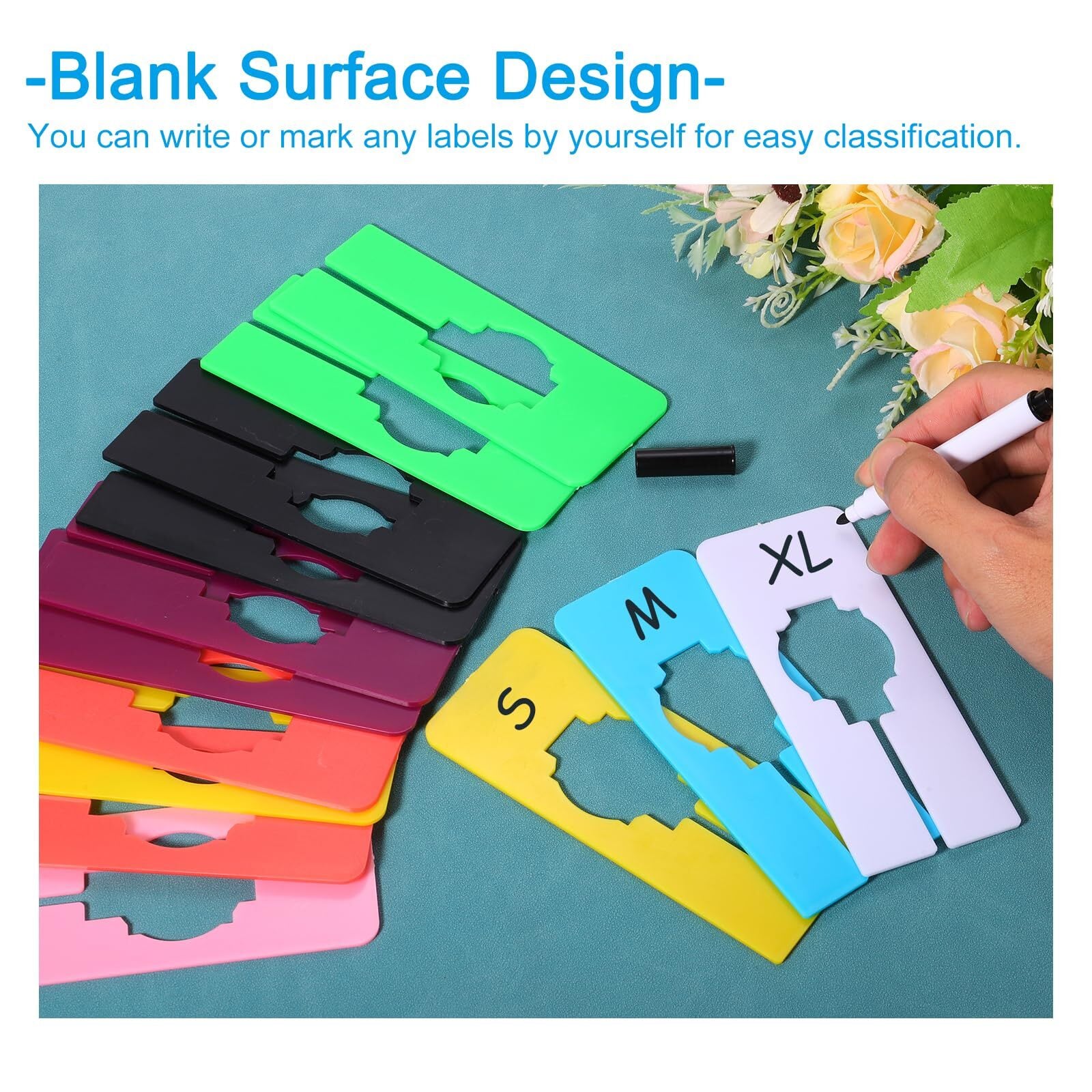 利点:頑丈なプラスチック素材で、軽量で持ち運びに便利で、壊れにくいです。スロットの開口部が付いており、簡単に固定でき、収納システムを構築し、クローゼットを効率的に整理できます。空白の表面にマーカーペンが付属しており、簡単に分類できます。
