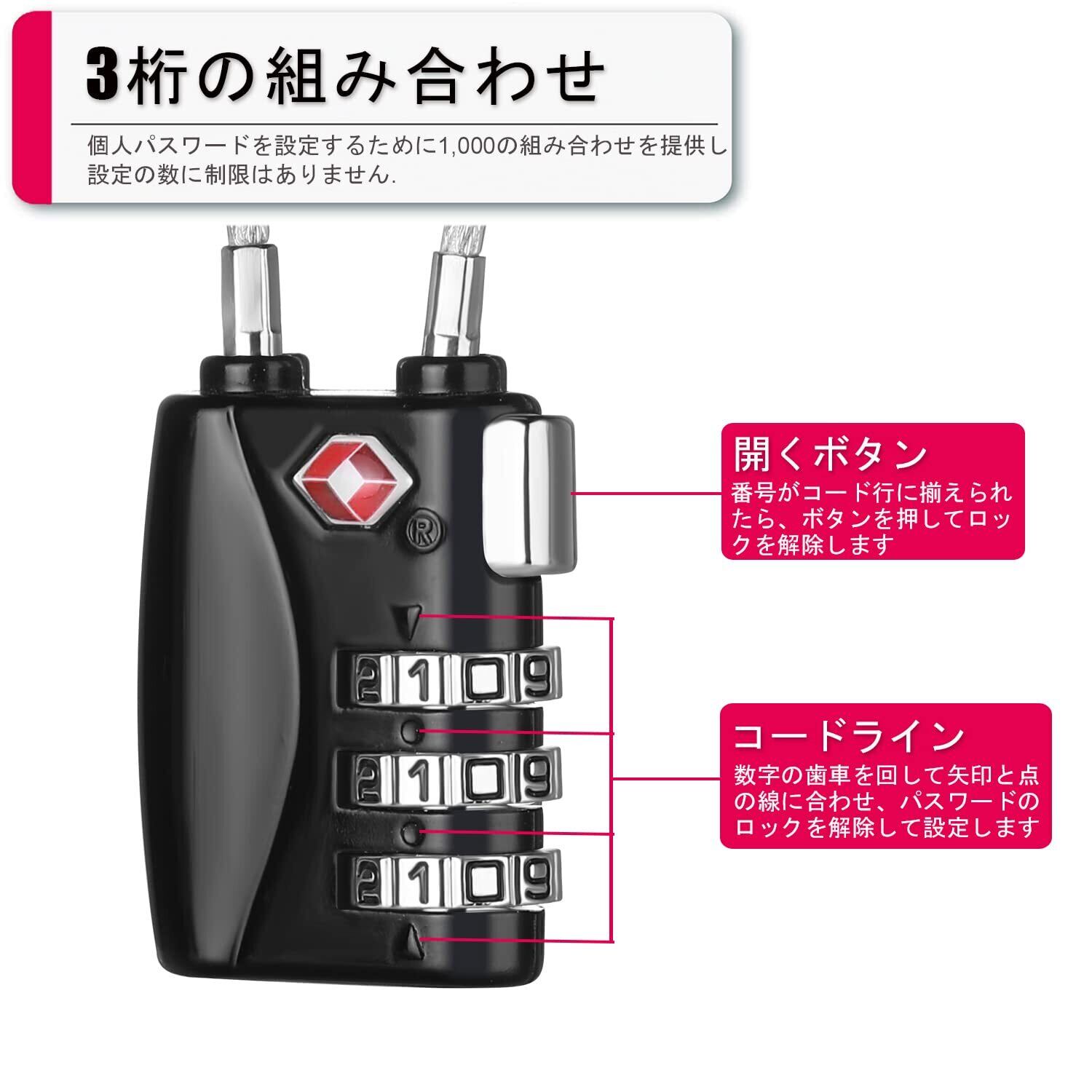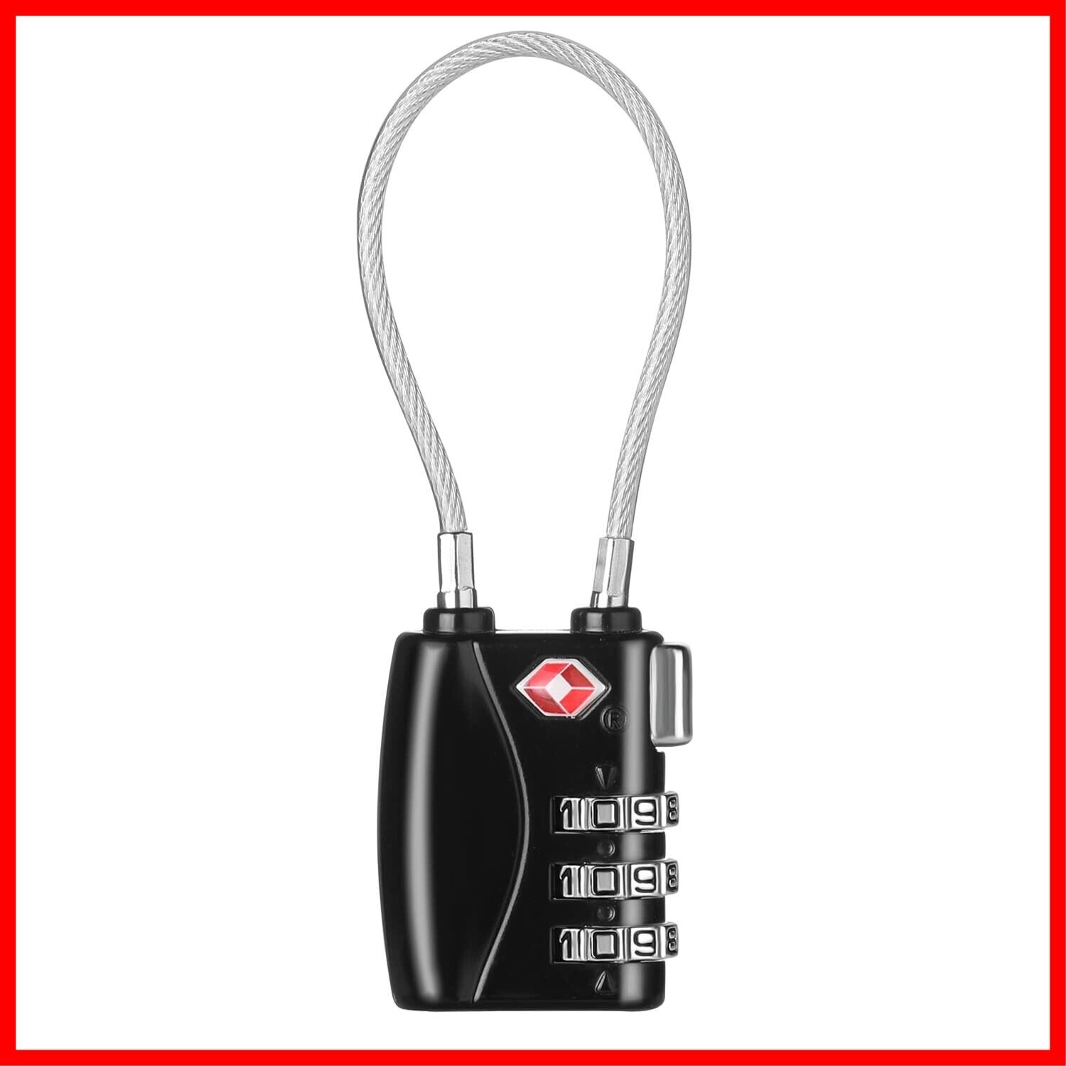 ZHEGE TSAロック 南京錠 ワイヤータイプ 旅行用 安心 防犯グッズ 3桁ダイヤル式ロック(ブラック)