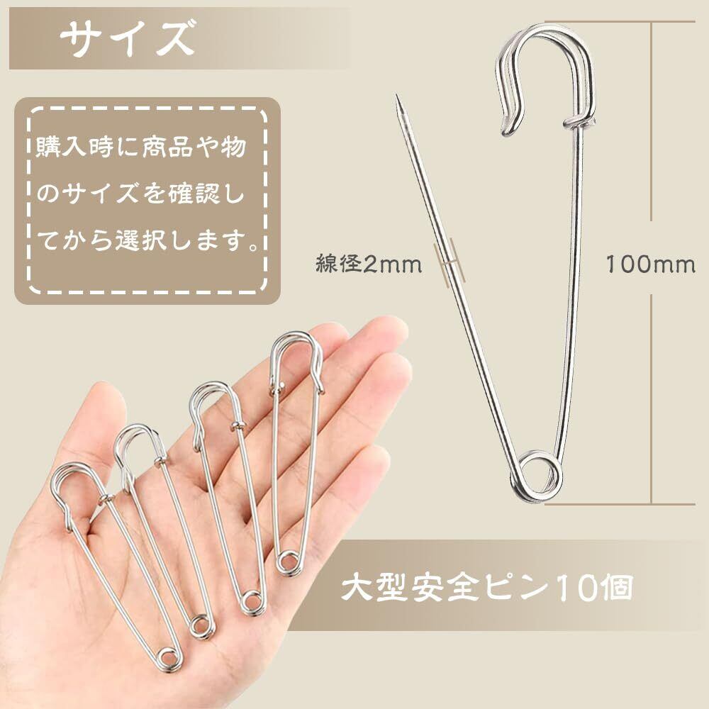 安全ピン 100mm 大きい安全ピン 10個セット 特大 ロック安全ピン 金具 ロック針 キルトピン おしゃれ ブローチピン 針 セイフティピン アクセサリーパーツ スカートや帽子など ハンドメイド 手芸素材 ステンレス鋼 高耐久 (シルバー)