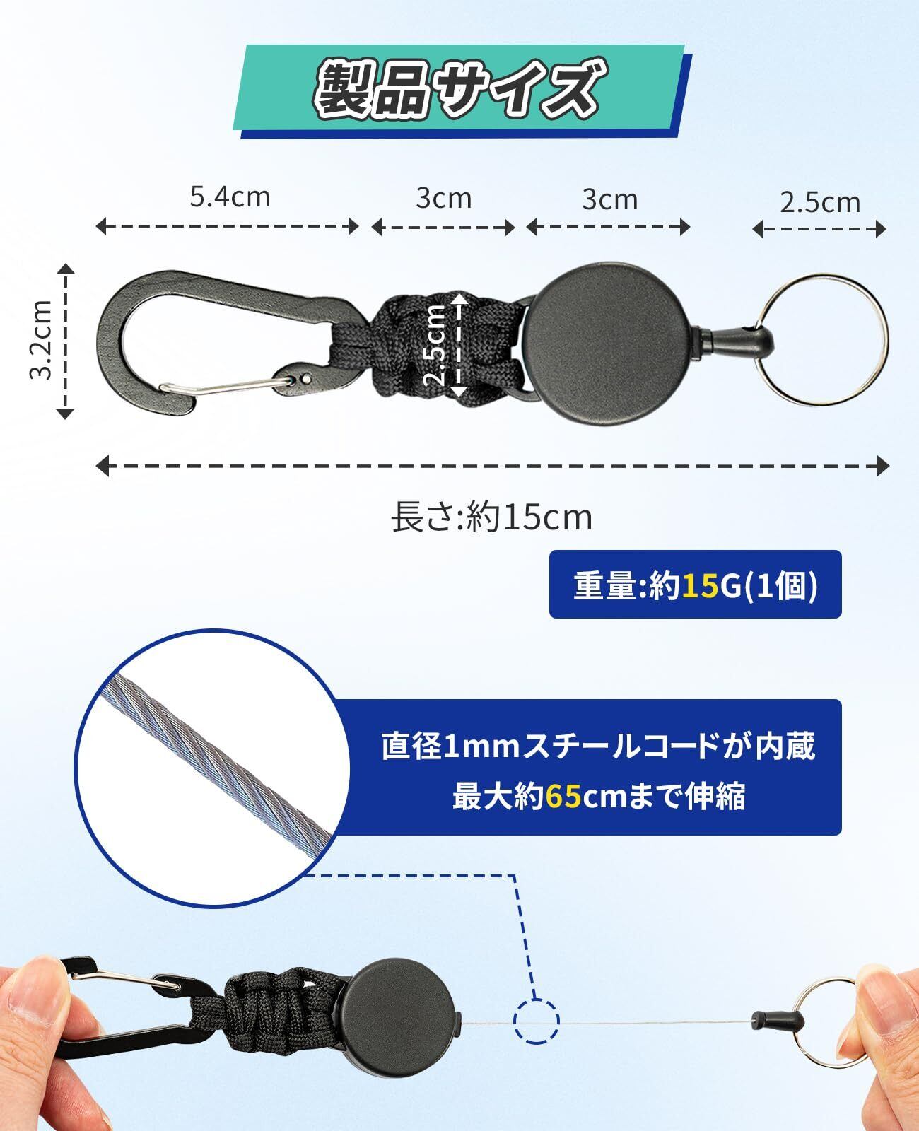● 特徴:2個セット、超軽量、頑丈、最長65cmのリール、紛失防止機能、カラビナ付き
