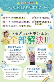 「この『トモダ 新型シャボン玉液』で、あなたのシャボン玉遊びをさらに楽しくしましょう!」