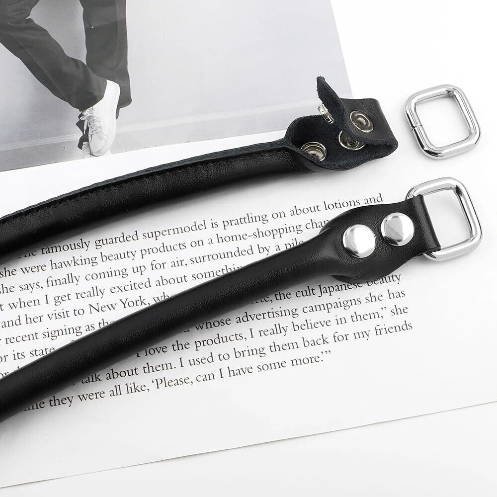 かばん 持ち手 2層レザー 本革 かばん取っ手 D菅付き 取っ手着脱可能 手芸用持ち手 ビジネスバッグ修理用 補修用持ち手 本革 牛革 交換用持ち手 (ブラック2)
