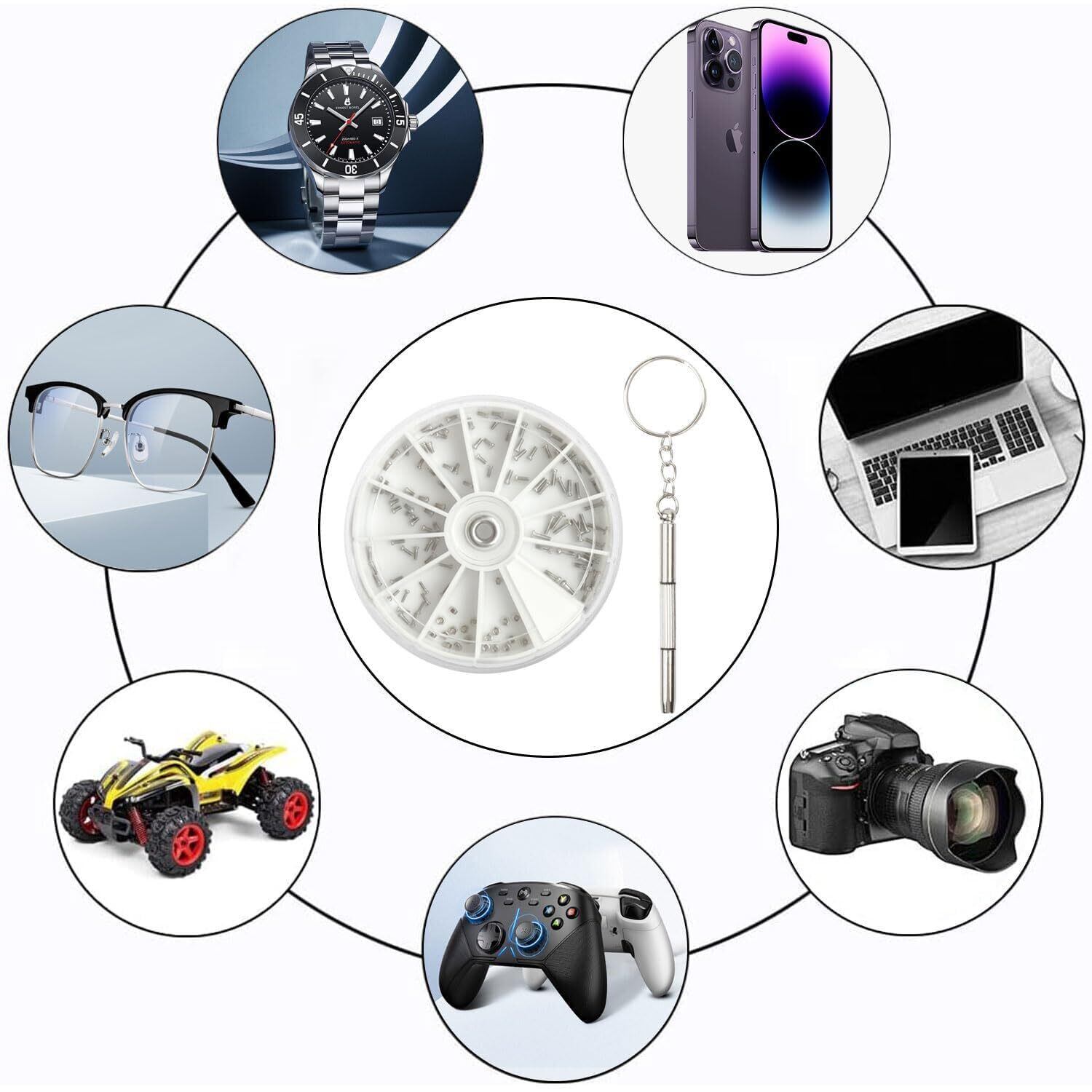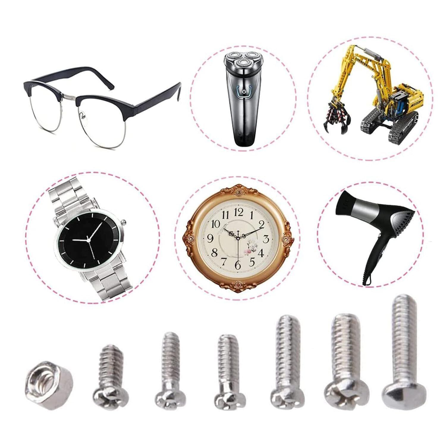 【腕時計修理にも対応!】 : このネジセットは、メガネだけでなく腕時計の補修にも使えるため、幅広い用途で活躍します。様々な場面で便利にご利用いただけるアイテムです。