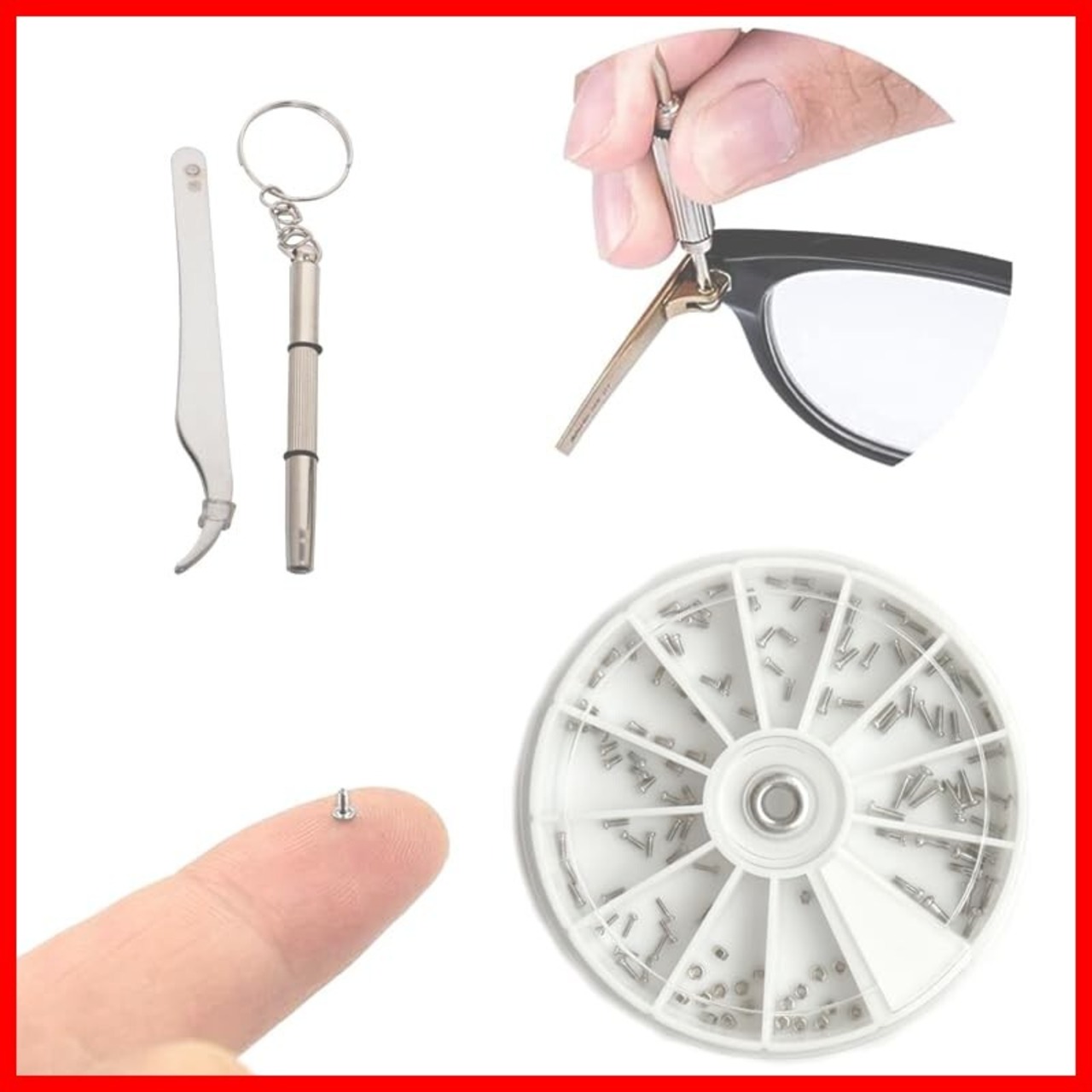 【携帯便利】使いやすいドライバーでほんどんとのメガネネジを対応できます。全てのネジ、ロックナットなどのを収納でき、コンパクトなケースはネジを混じらせずに必要なものを取り出せて、収納に便利です。