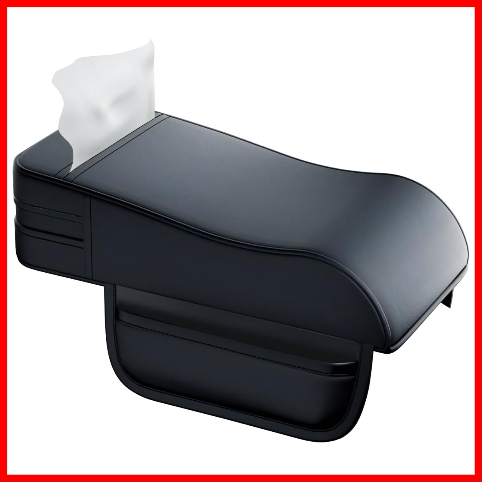 【便利なティッシュバッグ付き】このアームレストクッションは、ティッシュを本体内部に収納できる便利なバッグ付きです。内蔵されたティッシュバッグ(幅15.5cm、奥行き10cm、高さ8cm)はティッシュの位置ずれを防ぎ、子供やペットがいる環境でもストレスなく使用できます。また、コンソールボックスに設置することで、運転席、助手席、後部座席どこからでも簡単にアクセスできるのもグッド。