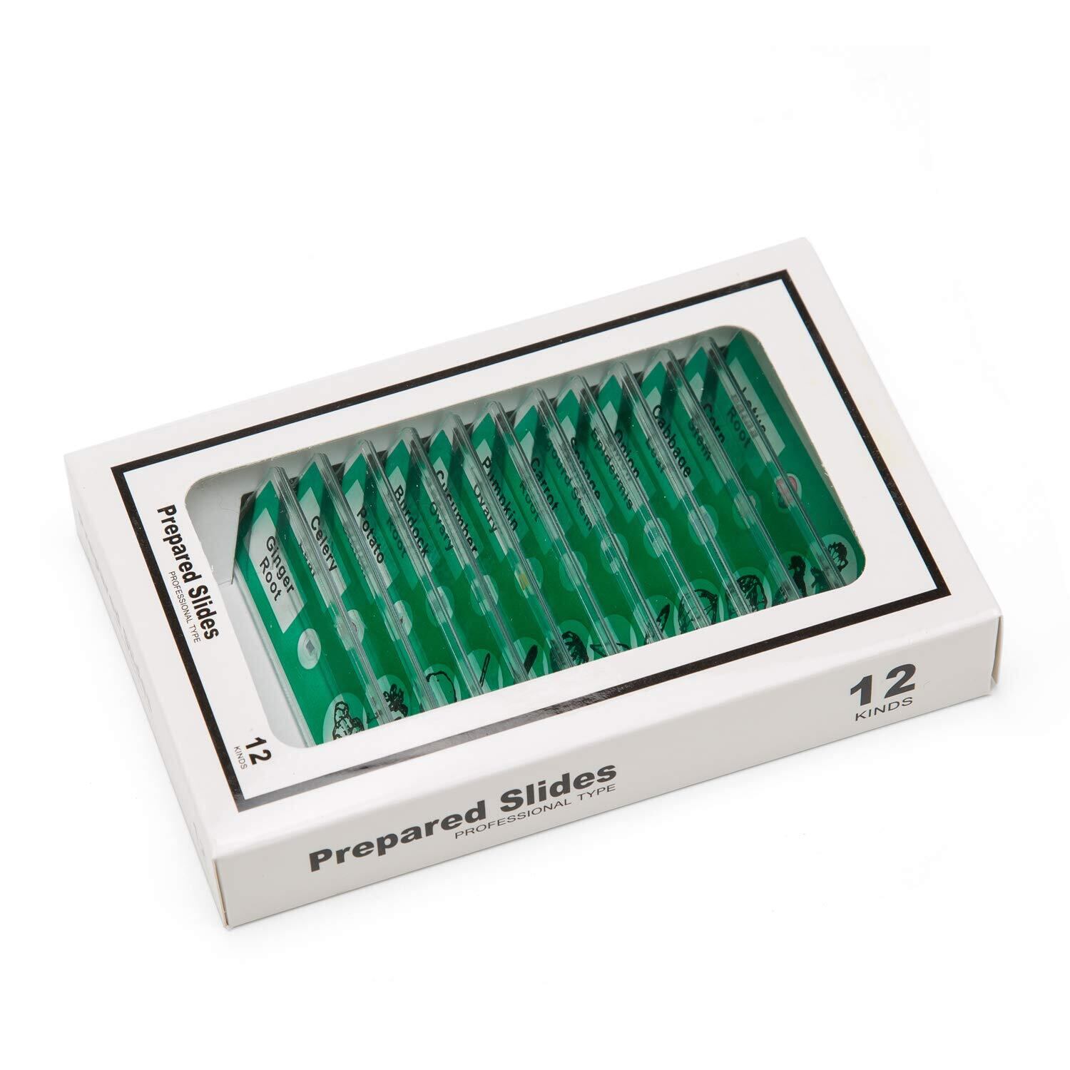 生物学教育に使用するための植物、昆虫、動物組織を含む、48種類のスライドセットです。