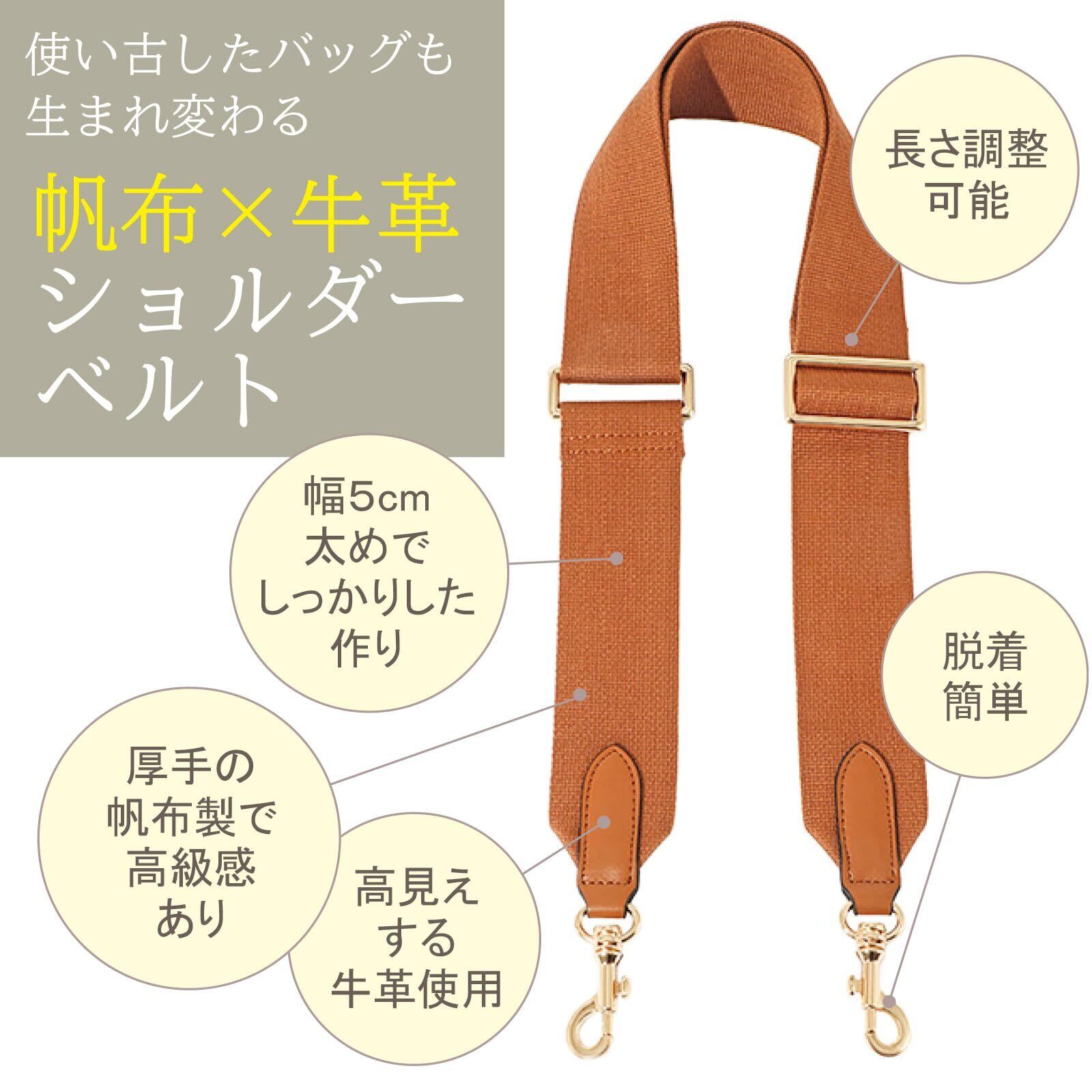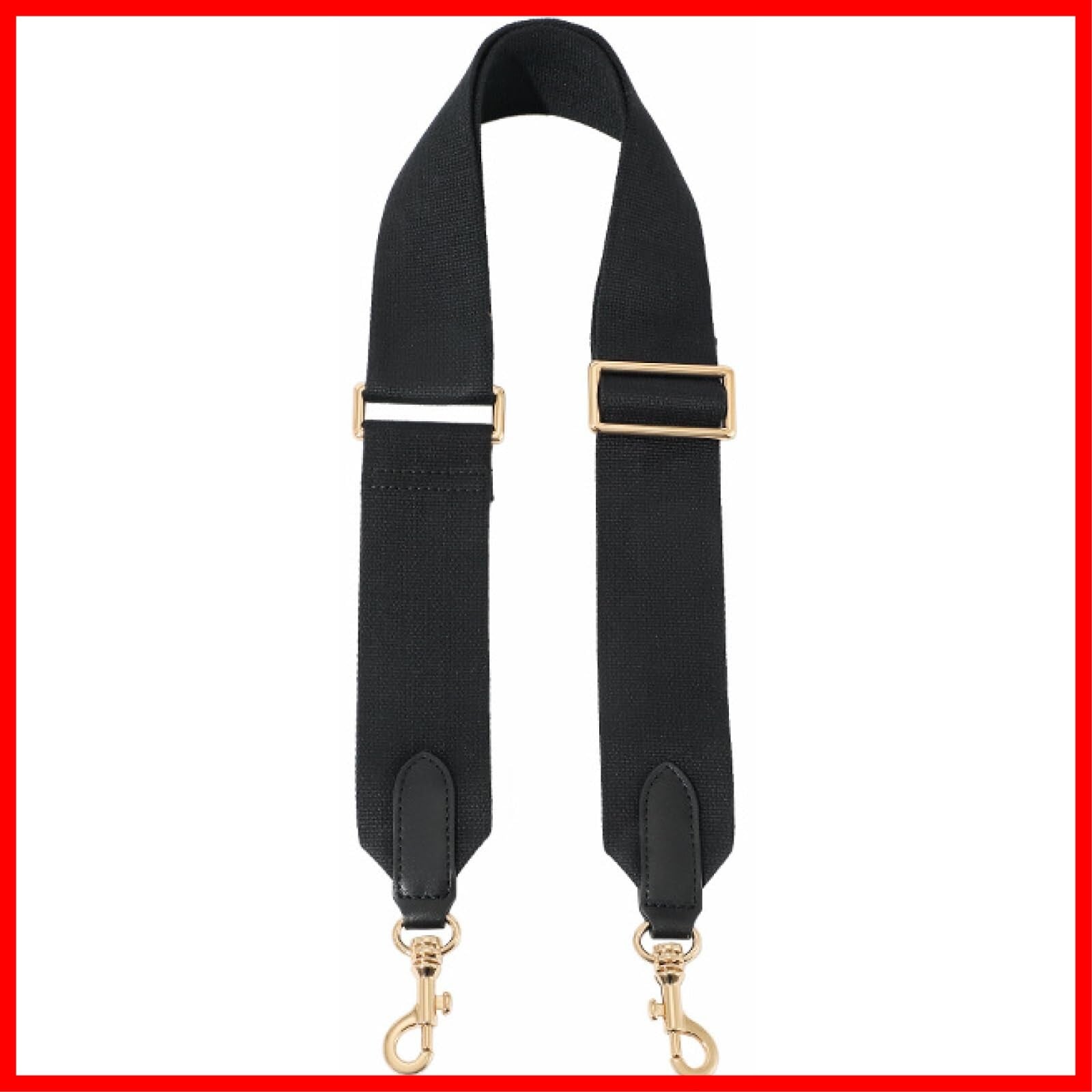 [masamilk] 帆布 牛革 ショルダーストラップ 太め 幅5cm バッグ用 ショルダーベルト キャンバス 交換用 単品 (ブラック×ゴールド)