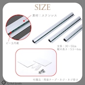 サイズ等に関して:全長:30〜50㎝ 長さ:5.5〜6㎝ 付属品:両面テープ・ネジ・ネジ受け