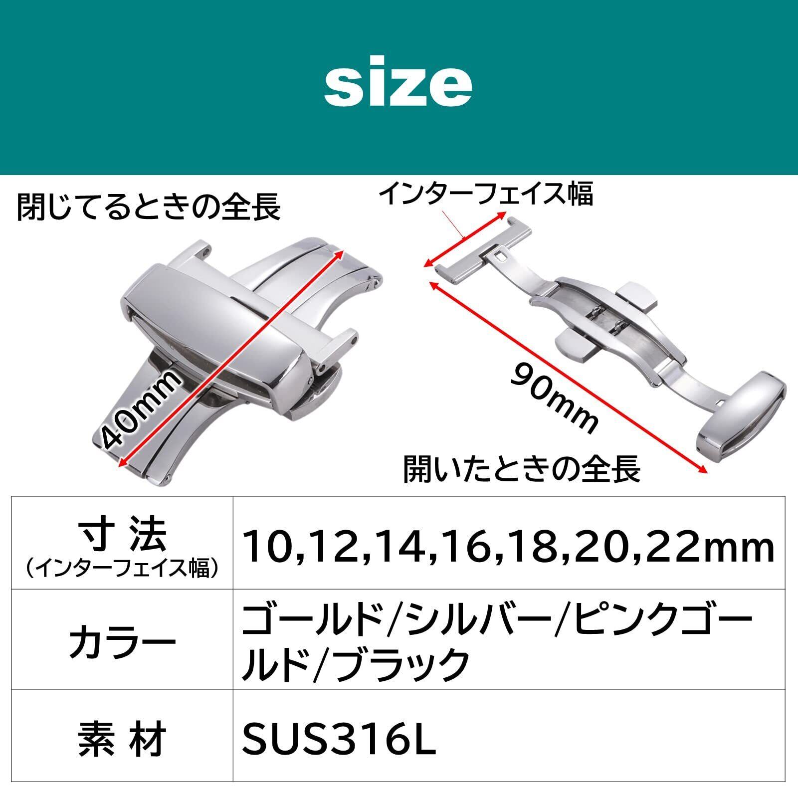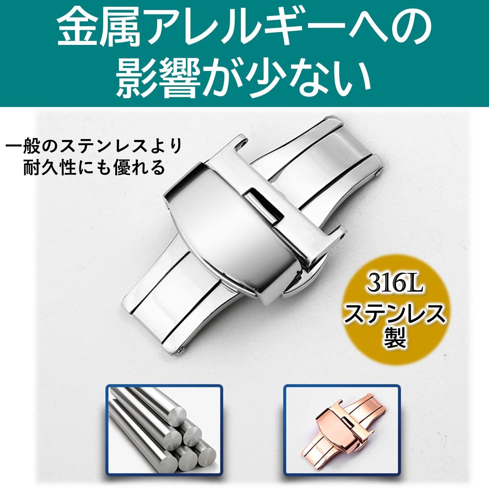 [ルボナリエ] Dバックル 尾錠 観音開き 両開き ワンプッシュ 時計バンド 時計ベルト 交換 腕時計 10mm-22mm