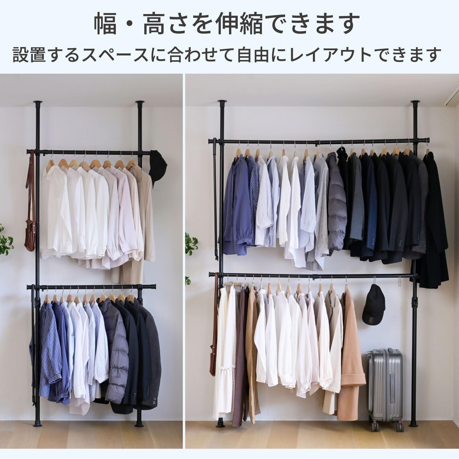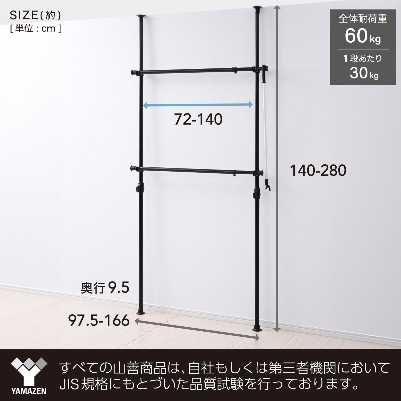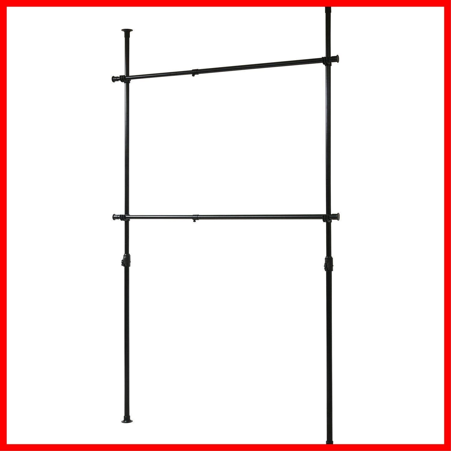 山善(YAMAZEN) 突っ張りポールハンガーラック ブラック 幅97.5-166cm 高さ140-280cm ダブル 伸縮 WJ-775(BK)