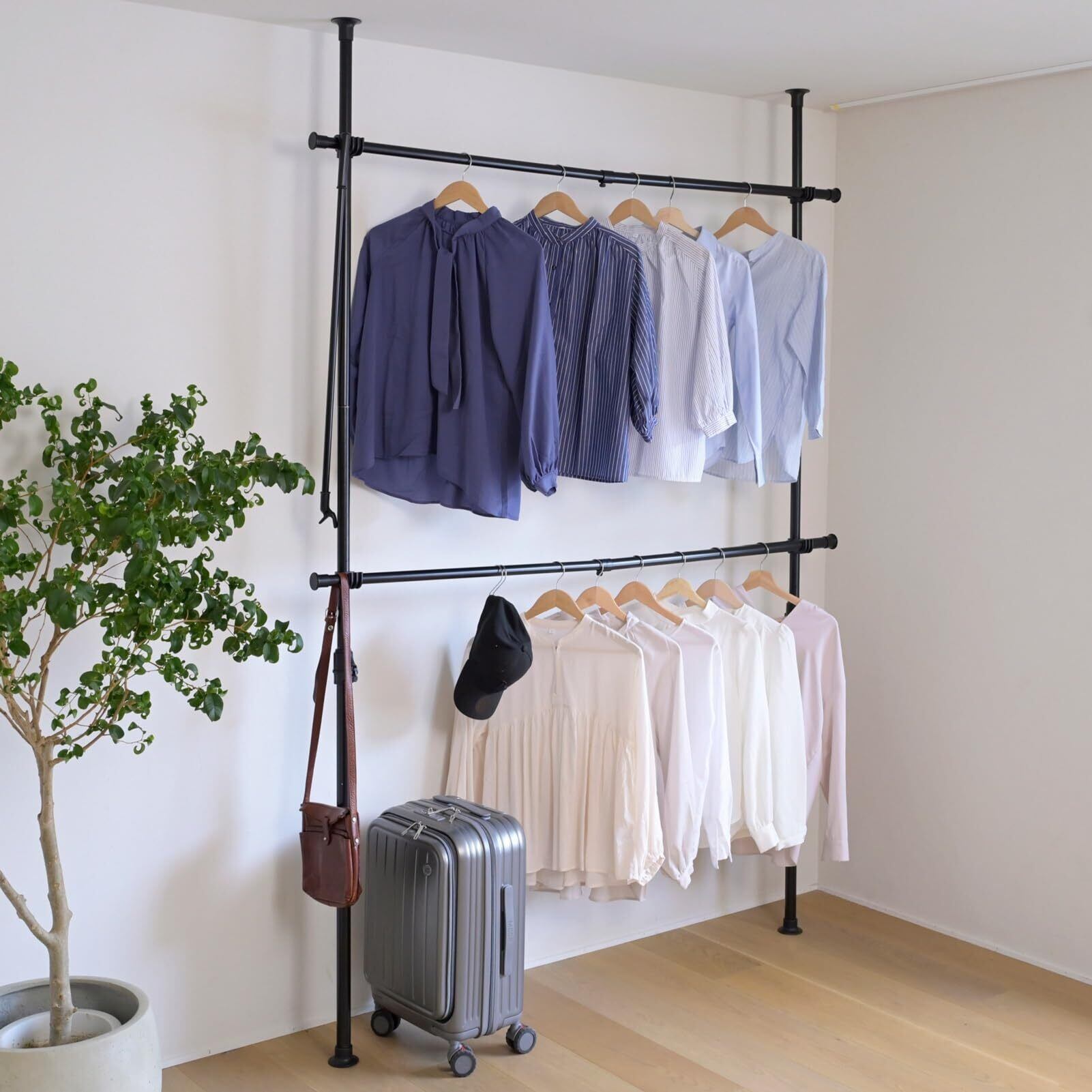 [山善(YAMAZEN) 突っ張りポールハンガーラック ブラック 幅97.5-166cm 高さ140-280cm ダブル 伸縮 WJ-775(BK)]
